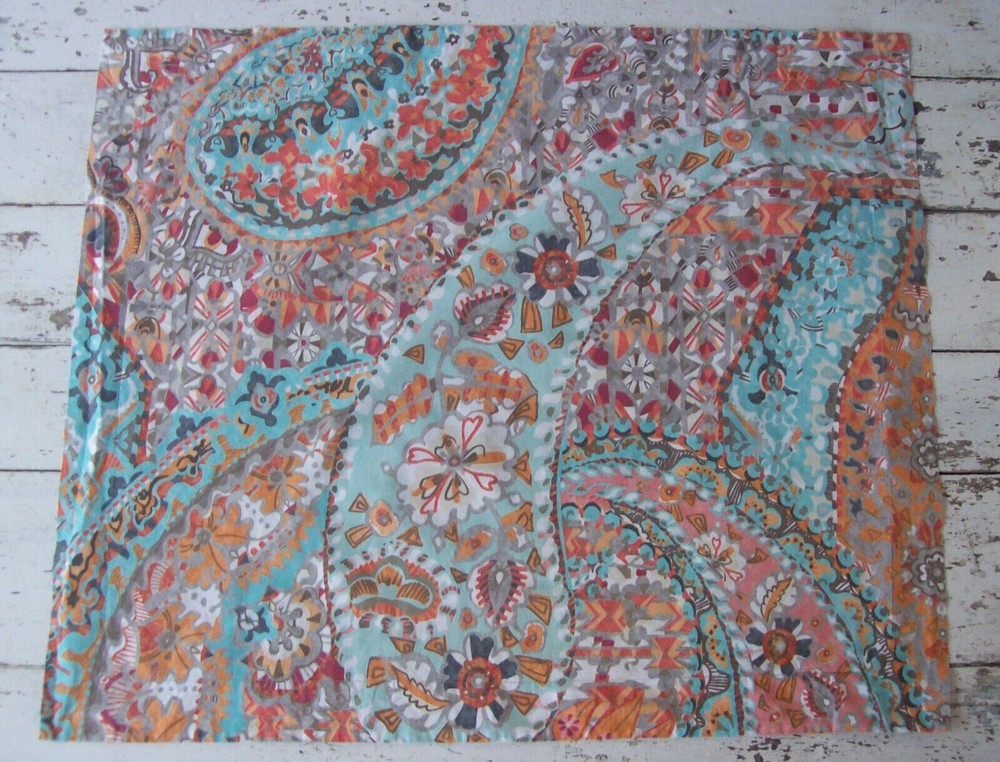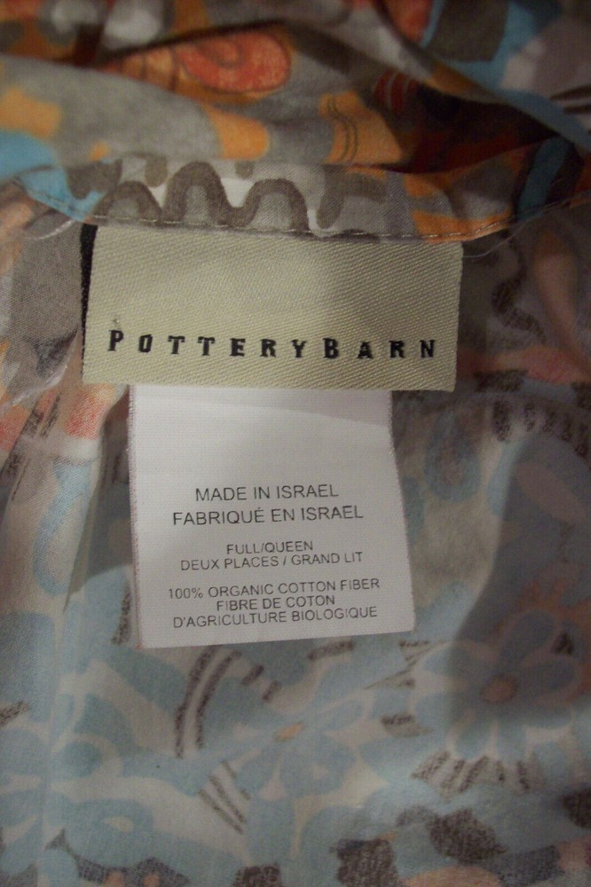 BRAND: Pottery Barn ITEM: 3-piece bedding set: Full/Queen button-close duvet cover ( 88" long x 92" wide) 2 standard pillow shams (20,5" h x 24 " w , plus 2-inch flange on all sides) PATTERN: Paloma Paisley FABRIC: 100% organic cotton percale, 200-thread count CARE: Machine wash, tumble dry CONDITION: Pre-owned, very good. Normal wear. No flaws to note.