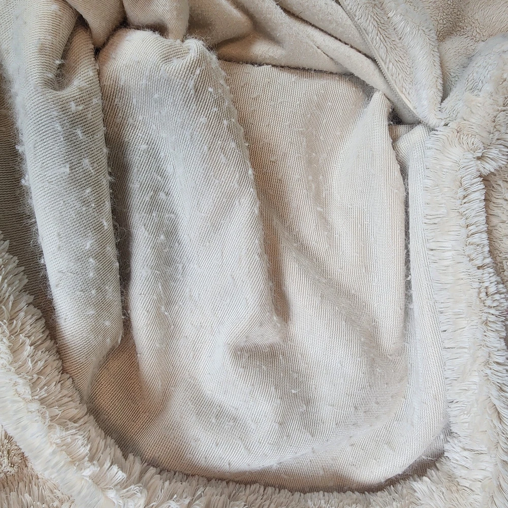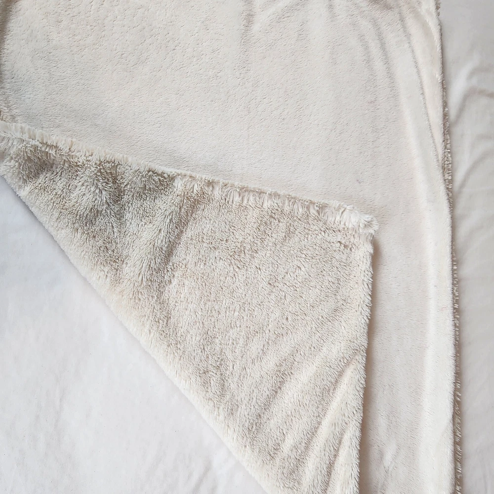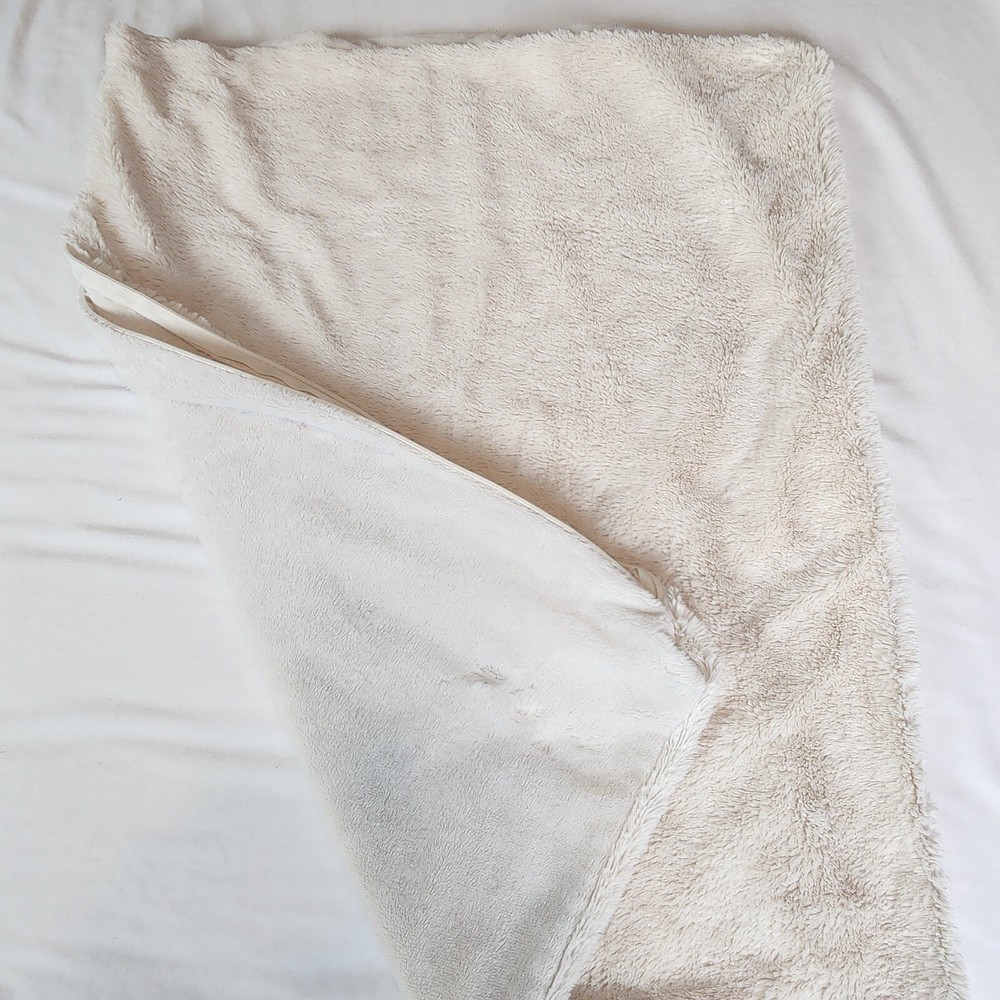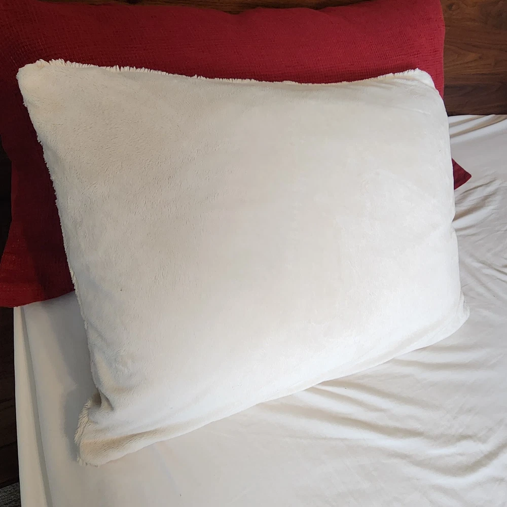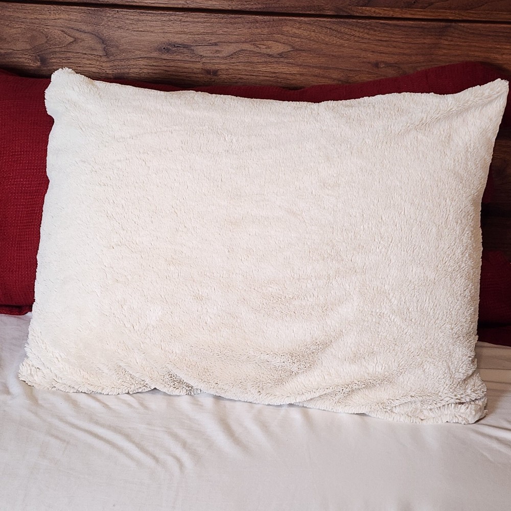 Pottery Barn Faux Fur Ivory Light Beige Standard Size Pillow Cover 25" x 19" Zip Closure Faux fur on one side, velour on opposite side Machine washable