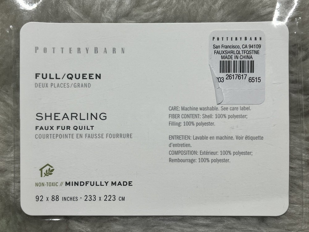 BRAND NEW WITH TAG WHAT A GREAT LUXE SOFT COZY QUILT FOR YOUR BED Retails for $279.00 + tax, so getting a good deal here Can't wait to curl up in the comfort at night Full / Queen Size. 92" x 88" Faux Shearling Fur Quilted Bedding is made of ultra-dense fibers for an authentic look and an unimaginably soft hand. This luxe collection is perfect for dressing the bed in a layer of snuggle-in warmth. Quilted of 100% polyester. Reverses to solid. Filled with 100% polyester batting. STANDARD 100 by OEKO-TEX Certified: Tested in an independent lab and verified to be safe from over 350 harmful substances. Machine wash. Imported. ***** I ALSO HAVE THESE IN KING SIZE IN MY EBAY STORE******