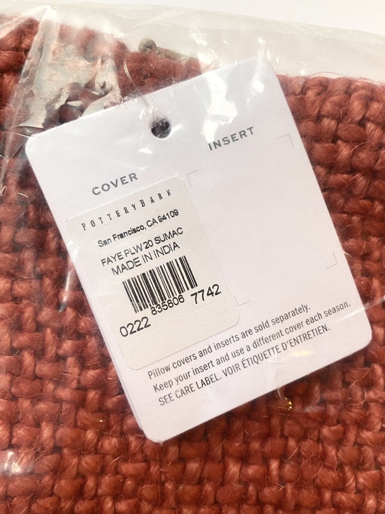 Add a pop of color and texture to your home decor with this brand new Pottery Barn Faye Linen Textured Pillow Cover in Sumac Red. Measuring 20 x 20 inches, this square pillow cover is made of 100% linen material and features a zip closure type. Ideal for your bedroom, living room, or guestroom, this pillow cover comes in a solid pattern and textured design with no personalization option. Its vibrant pinkish red color and shape make it a perfect fit for any home decor.