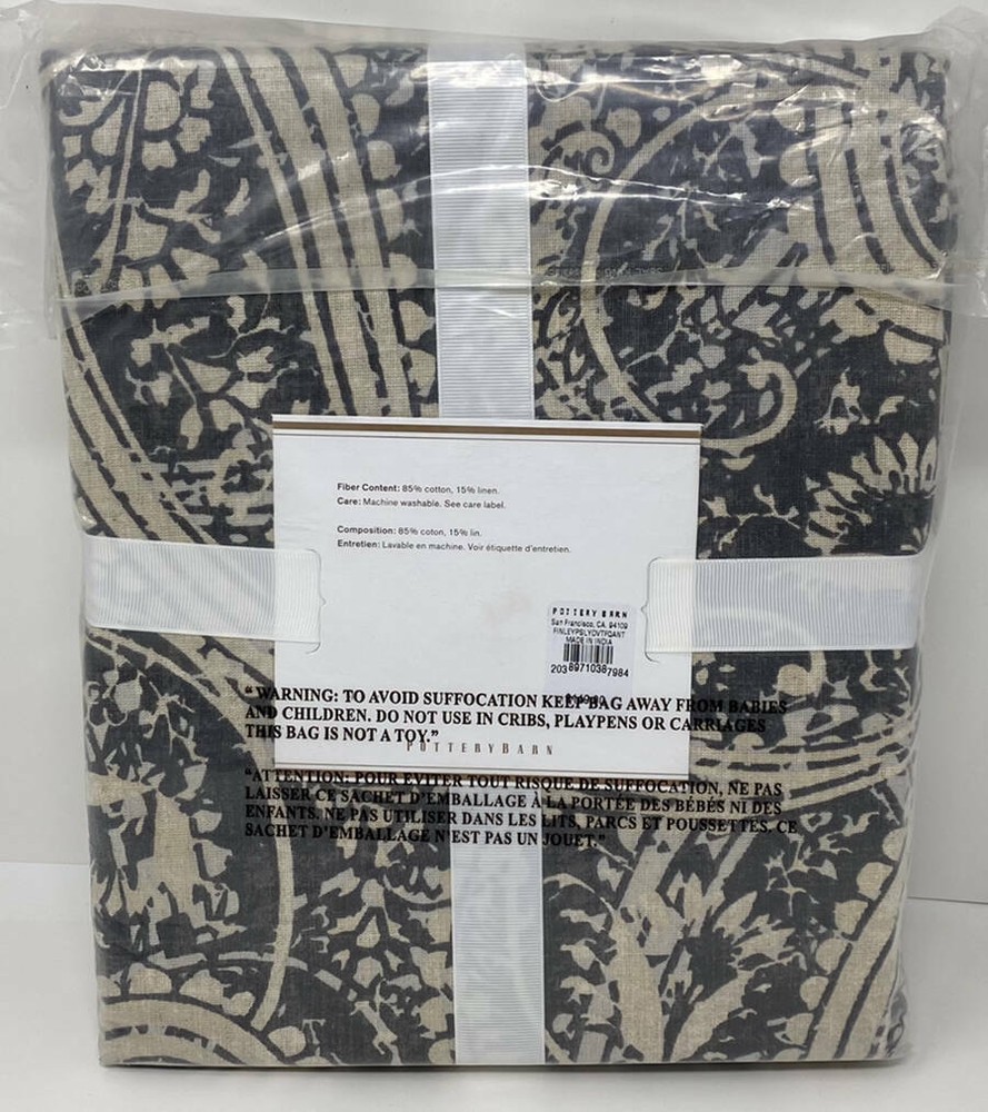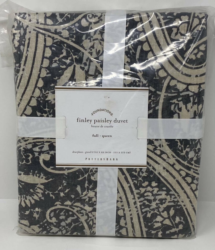 Pottery Barn Finley Paisley FULL / QUEEN Duvet Cover ~ Anthracite Gray Details: Woven of 85% cotton, 15% linen. Duvet cover has a hidden button closure and interior ties. Duvet cover reverses to the same design. Sham and insert sold separately. Machine wash. Imported. Size: Duvet Cover: Full/Queen: 88" l x 92" w Care: Wash before first use. Machine wash warm water, gentle cycle. Use only non-chlorine bleach when needed. Tumble dry low, remove promptly. Please read before you purchase: We take pride in our business, and we strive to do our best. We purchase brand new items or gently used items and we do our best to give accurate descriptions and photos. Pictures in the listing are of the actual item for sale. If you have any questions about an item, please contact us through eBay before you purchase. We try our best to resolve any issues as fast as possible. Please contact us right away if there are any issues with your purchase. We understand that colors may show up differently on different computers or devices. If you receive the item that doesn’t match your color scheme or décor, please feel free to return the item. If this is the case, please select Doesn’t Fit or Just Didn’t Like It as the reason for the return. If you select the reason Item Not As Described for a color issue, we will report you to eBay for resolution. Returns are accepted but the item must be returned within 30 days of the original delivery date. When we receive the returned item, inspect it, and it is found to be in the same condition that we shipped it in (brand new, unused, in the original packaging with tag attached) then we will provide a refund. Refunds are less original cost to ship the product. Returns that have any signs of use or handling will be reported to eBay; in these cases a partial refund may be given. Please see eBay’s return policies for more information. Thank you! Feedback: We strive to give you the best service. If you have any issues regarding your item, please contact us right away. Customer satisfaction is our priority. See my other listings for more great items! We accept MasterCard, Visa, Discover and American Express, PayPal through eBay's managed payment service. We can only ship to confirmed addresses provided at the time of sale ...so please make sure it is correct. We cannot modify the address after you have purchased the item. We provide fast shipping! Your item will be shipped within 2-5 business days via UPS Ground or USPS priority mail. UPS can NOT deliver to PO boxes, so please provide us with a physical street address. Once your item is shipped you will receive an email with your tracking number. We are HAPPY to combine shipping on items that can be combined. We cannot offer Flat Rate or Free Shipping to HI, PR and AK. Please email us for shipping rates to HI, PR and AK. Signature at delivery may be required for some items over $250. International bidders: We do offer SOME of our auctions to international buyers. Shipping charges in the listing only cover the US shipping costs. Extra shipping charges are required for international destinations. The customer is also responsible for any customs charges incurred. We will NOT mark international packages as a GIFT....so please do not ask. Thank you! txzj pxzj131 txzj-11 txzj39 txzj115