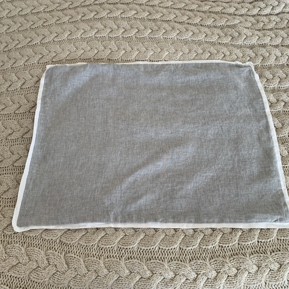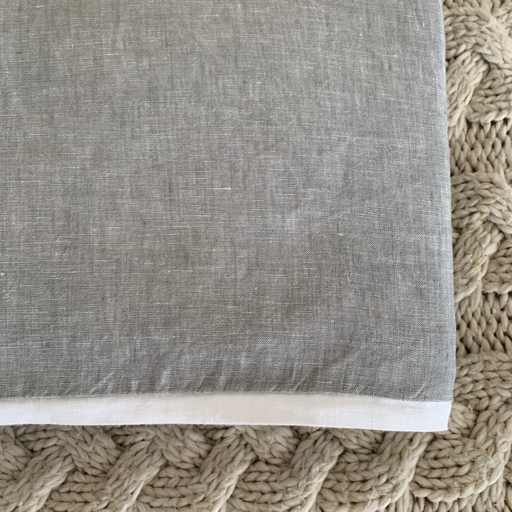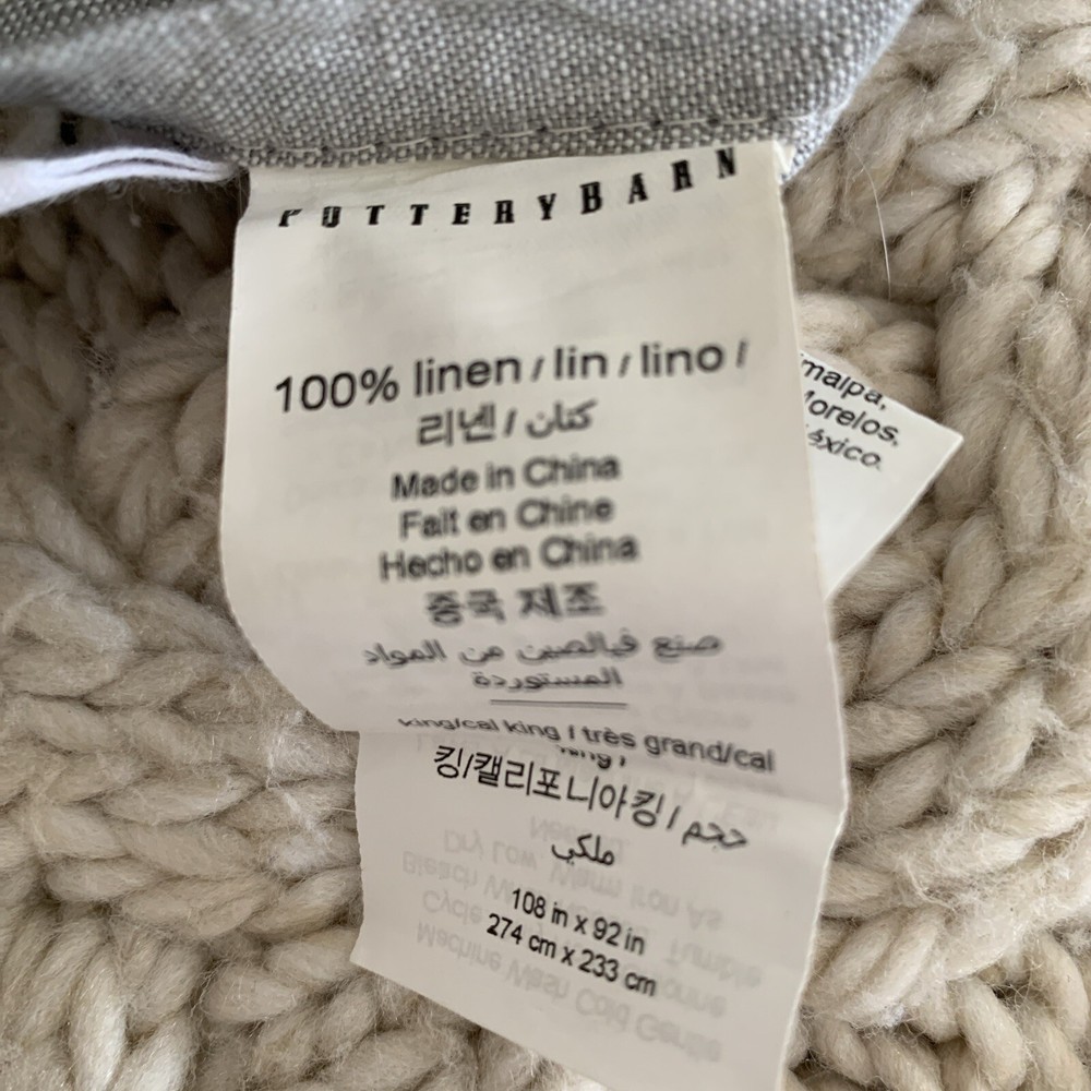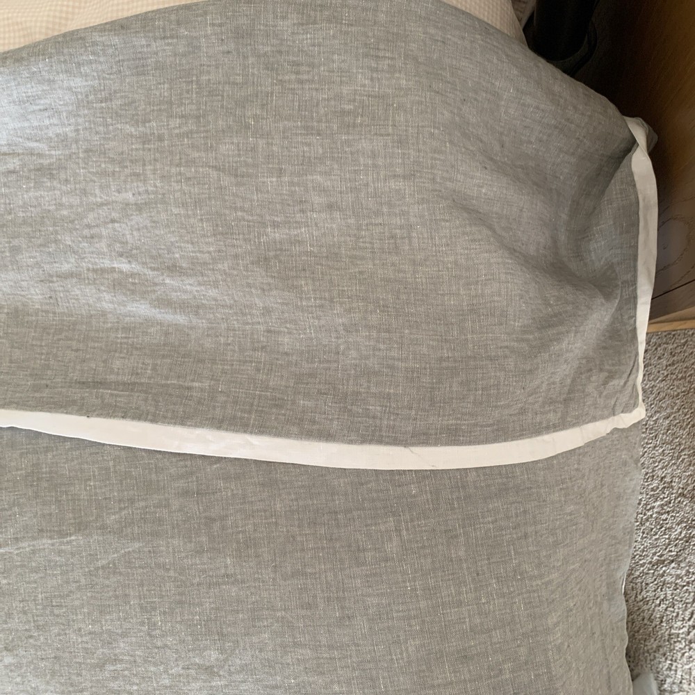 Nice used condition. No stains, rips or holes. Please examine photographs carefully and ask question if you have any concerns. 100% Linen. White trim along all sides of the gray linen duvet. Set Includes: 1 King Duvet 1 Standard Pillowcases Always Happy to Combine Shipping.