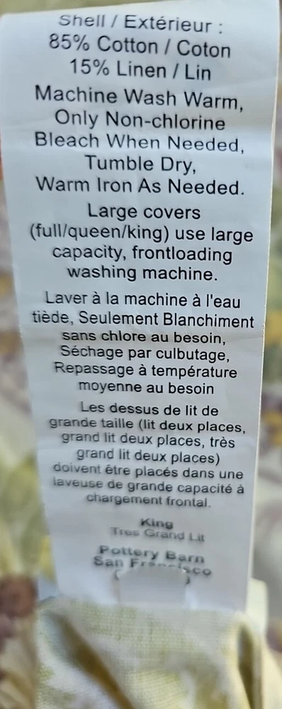 Nice used condition. No stains, rips, or holes. Beautiful print on a creamy white background. It is rare hard to find print. Includes: 1 King Duvet Cover and 2 standard sham covers. No inserts. I'm al...
