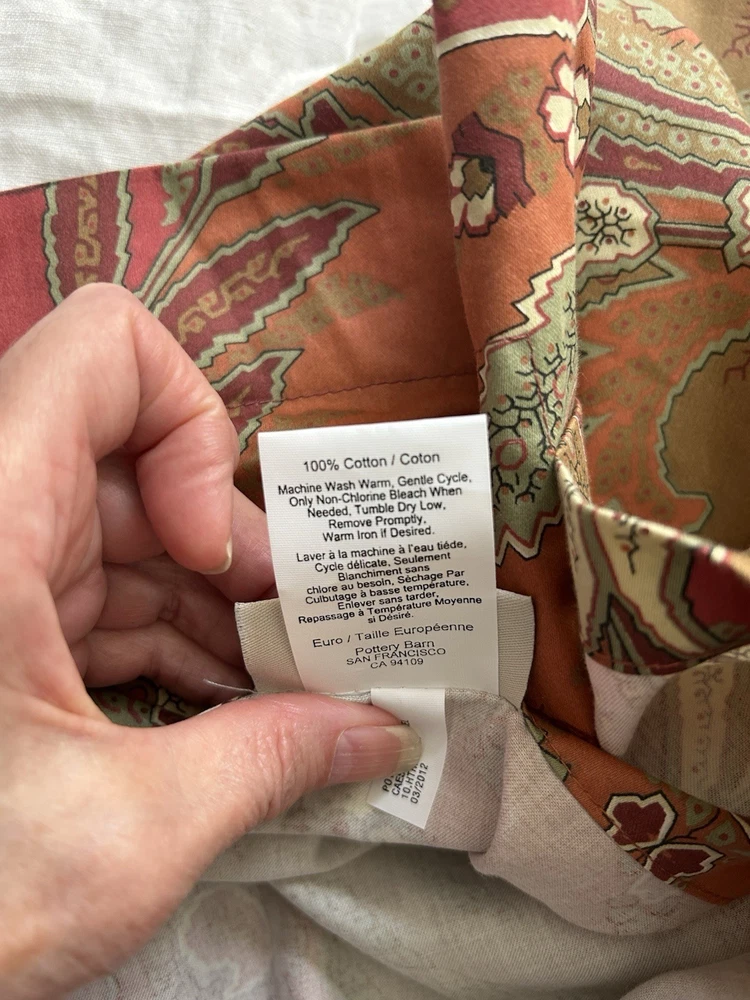 Very lovely Pottery Barn euro pillow shams in excellent condition - no holes no stains. 100% cotton. Fabric is very soft, feels like cotton sateen. The rich burgundies greens and otange terracotta tones of these shams are so beautiful. Please take a look at my other PB linens. Combined shipping is available. Please let me know if you have any questions. Thank you.