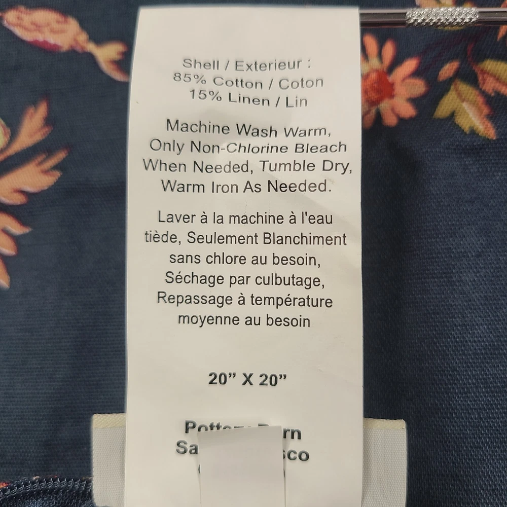 One new decorative throw pillow case from Pottery Barn. tagged as a 20" x 20", but one way measures just slightly under 20". Has a zipper for pillow install/removal. Please see photos for condition.