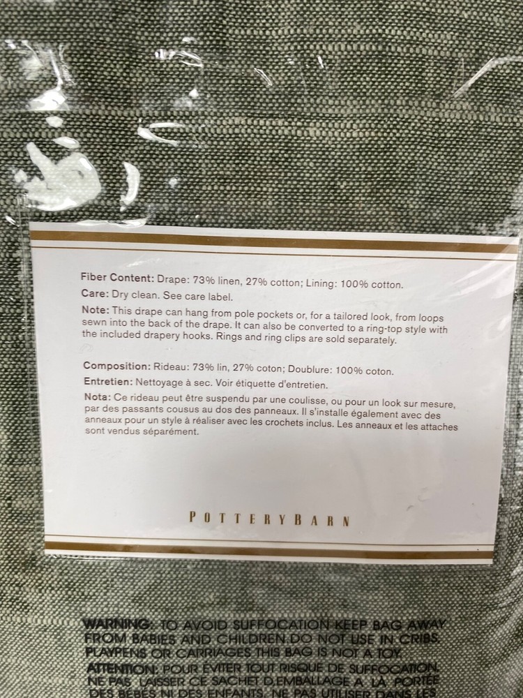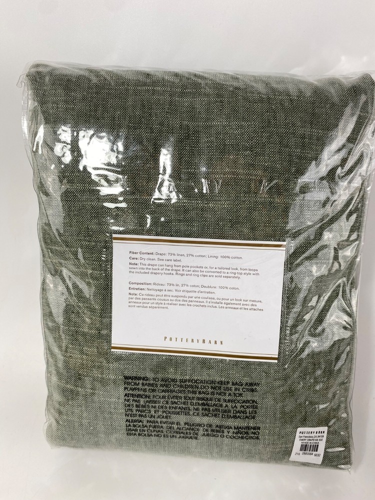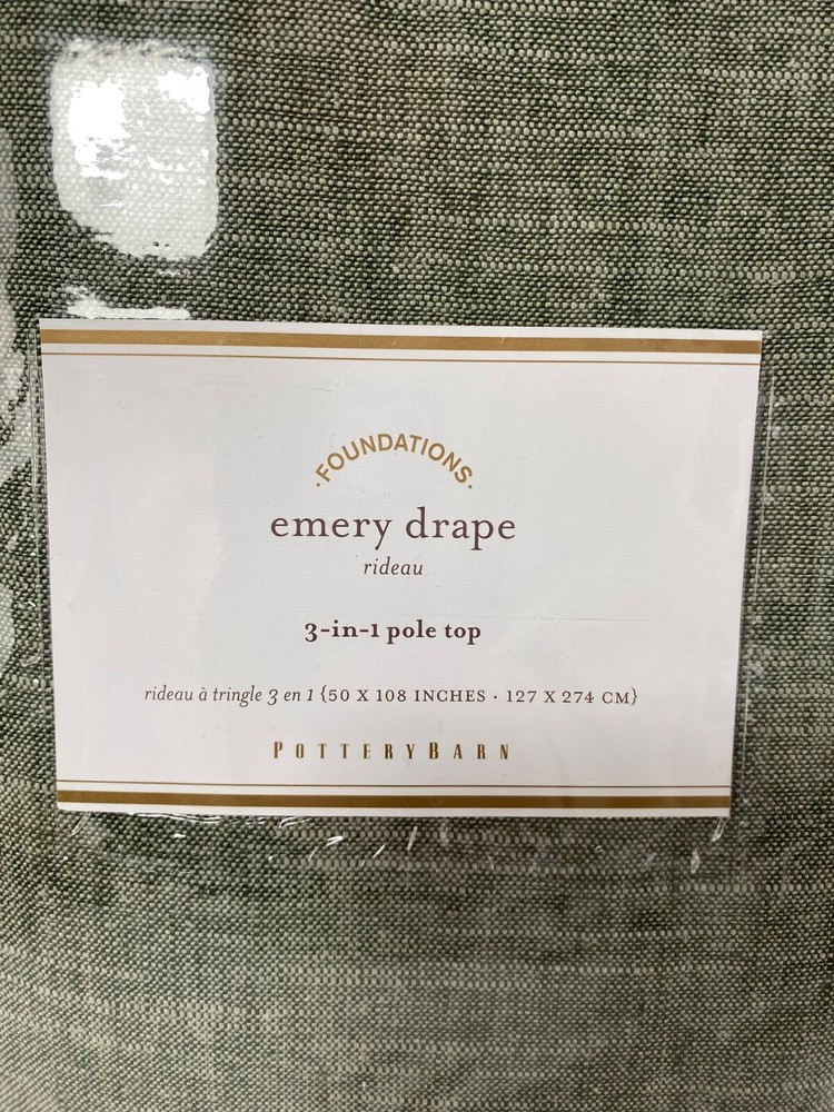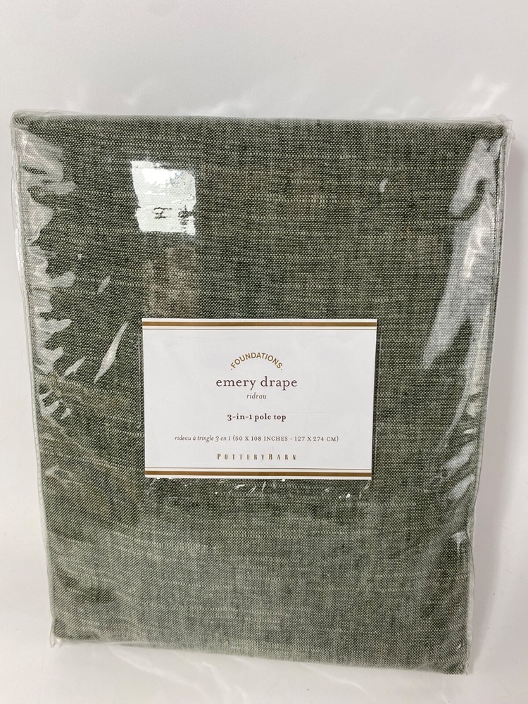 Pottery Barn Foundations Emery Drape 3 in 1 Pole Top 50" x 108” Sage Green NWT...