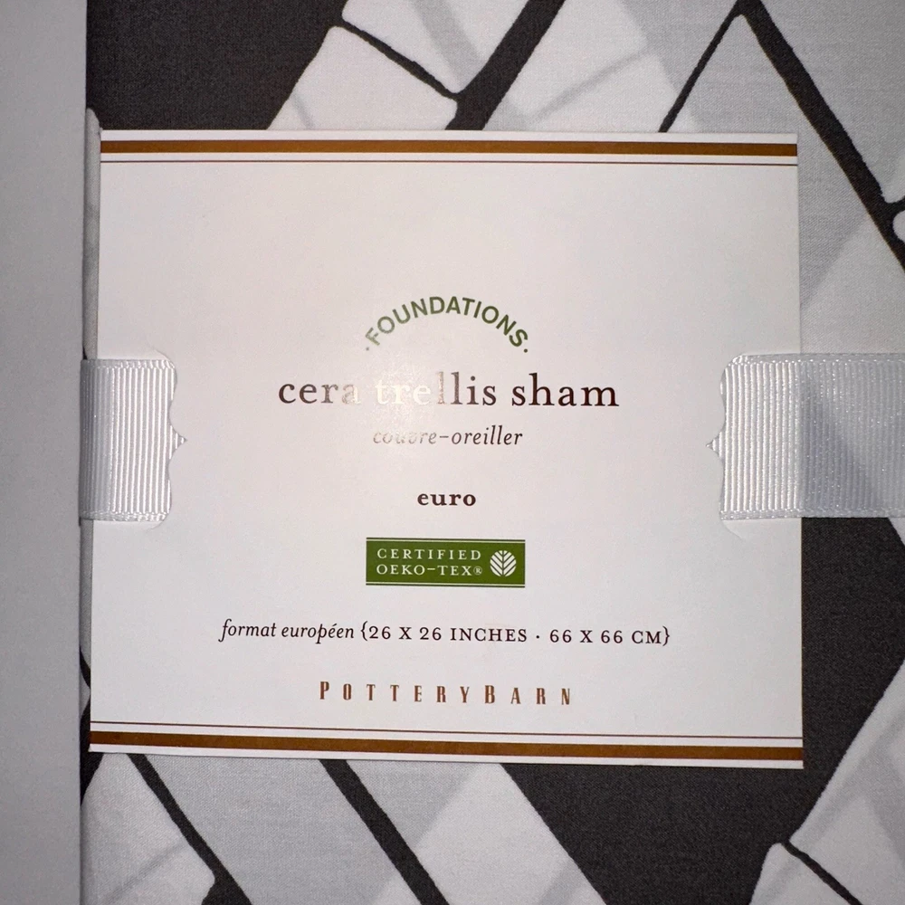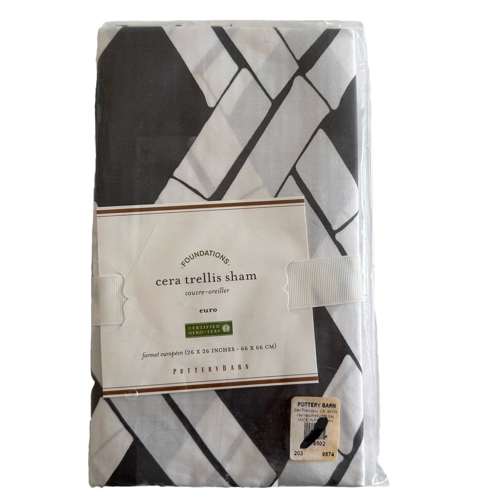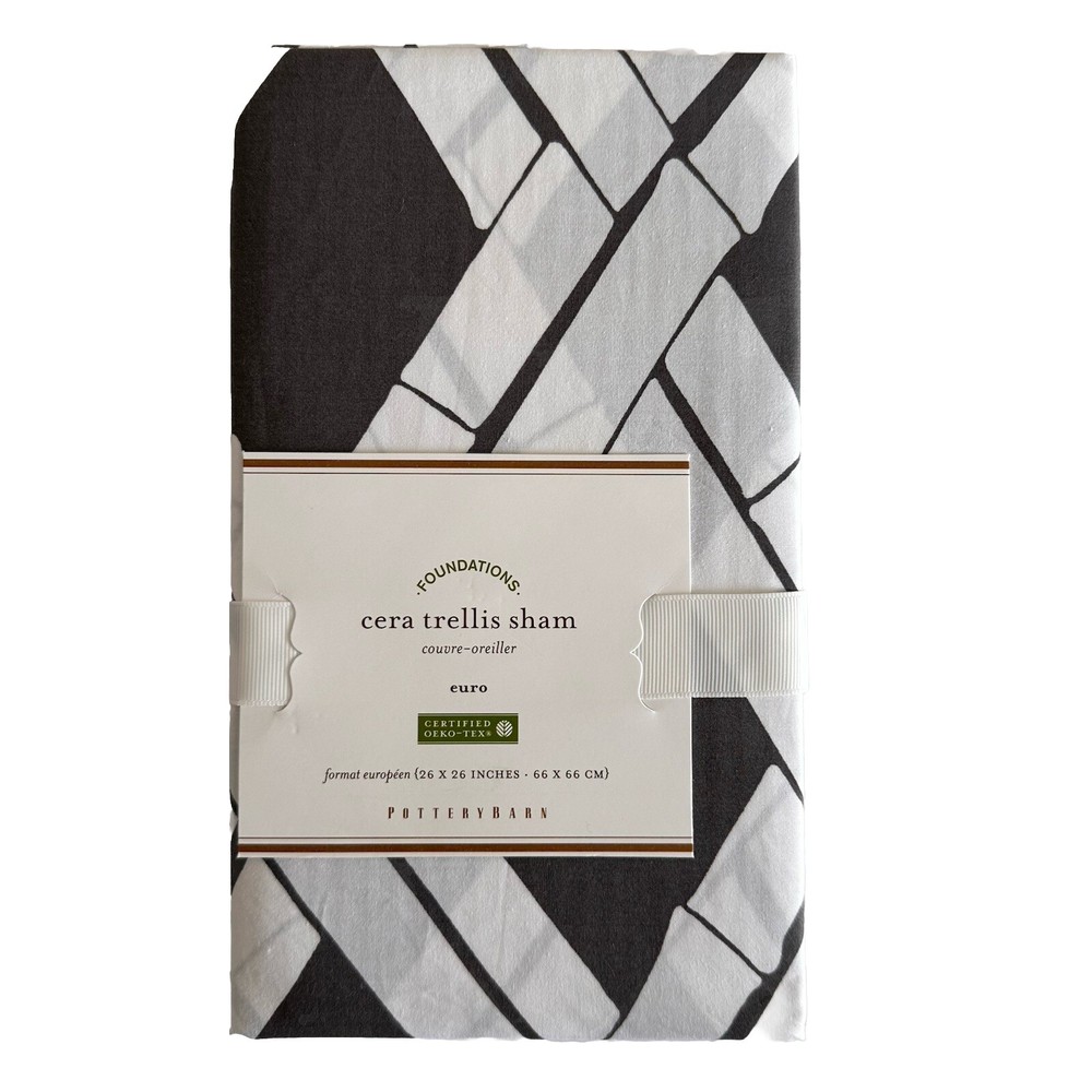Pottery Barn Foundations Cera Bamboo Trellis Euro Sham New In Package Dark Gray & White Bamboo Trellis Pattern 100% Cotton 26 x 26 This Listing Is For One Single European Pillow Sham