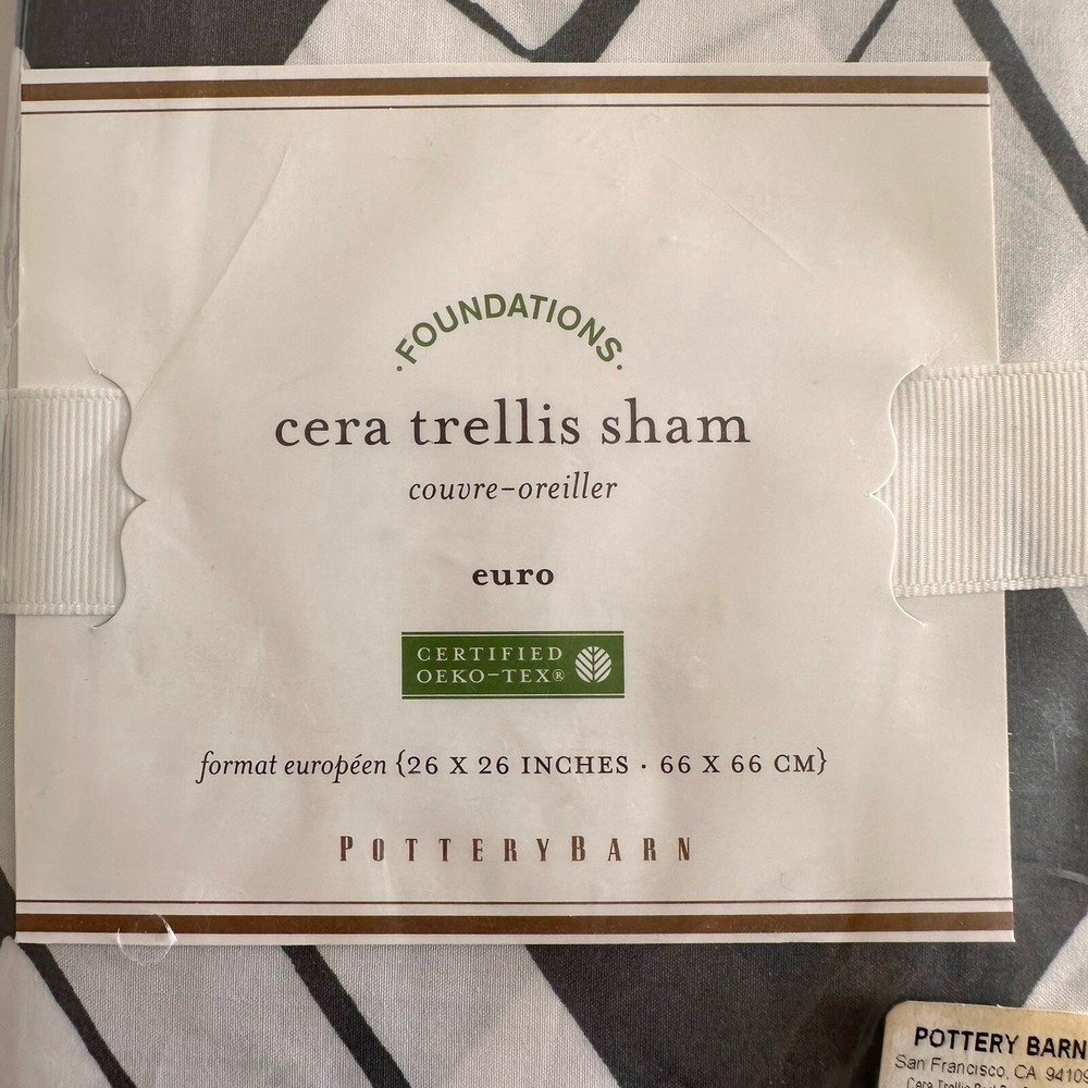 Pottery Barn Foundations Cera Bamboo Trellis Euro Sham New In Package Dark Gray & White Bamboo Trellis Pattern 100% Cotton 26 x 26 This Listing Is For One Single European Pillow Sham...