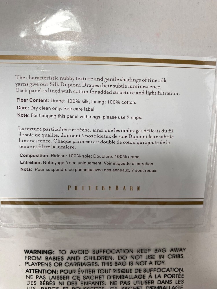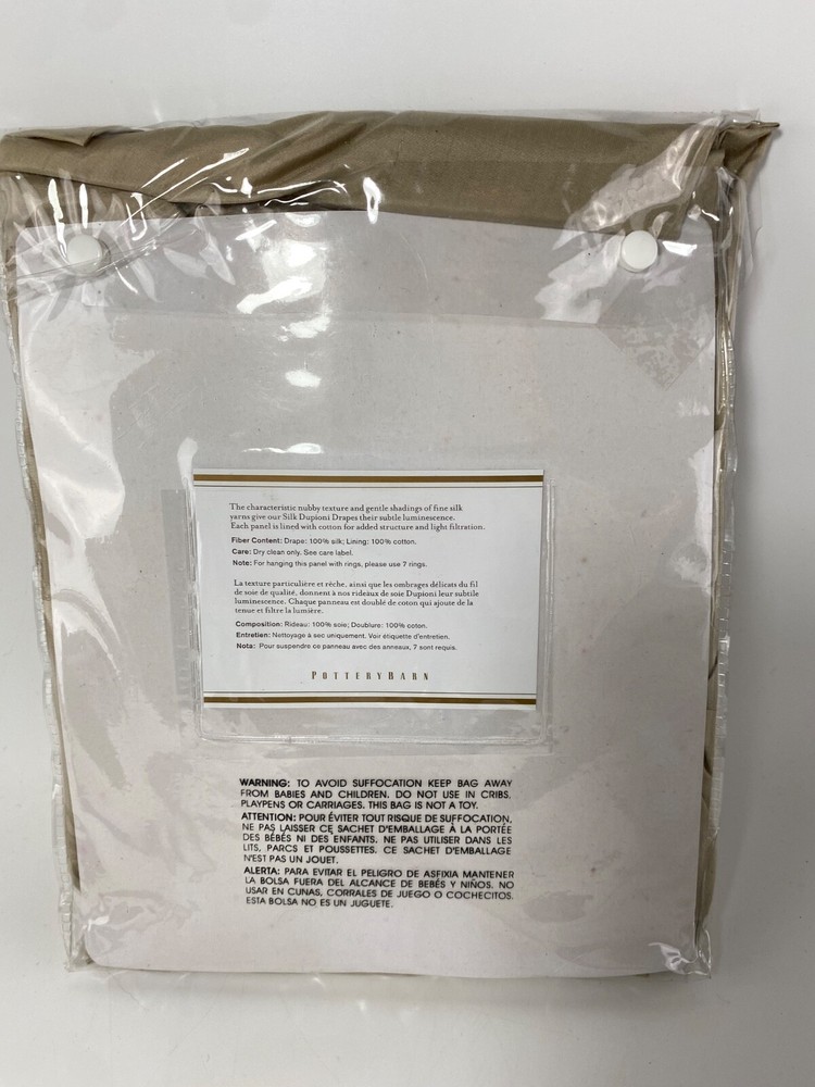 Pottery Barn Foundations Silk Dupioni Drape Pole Top 50" x 84” Parchment NWT...