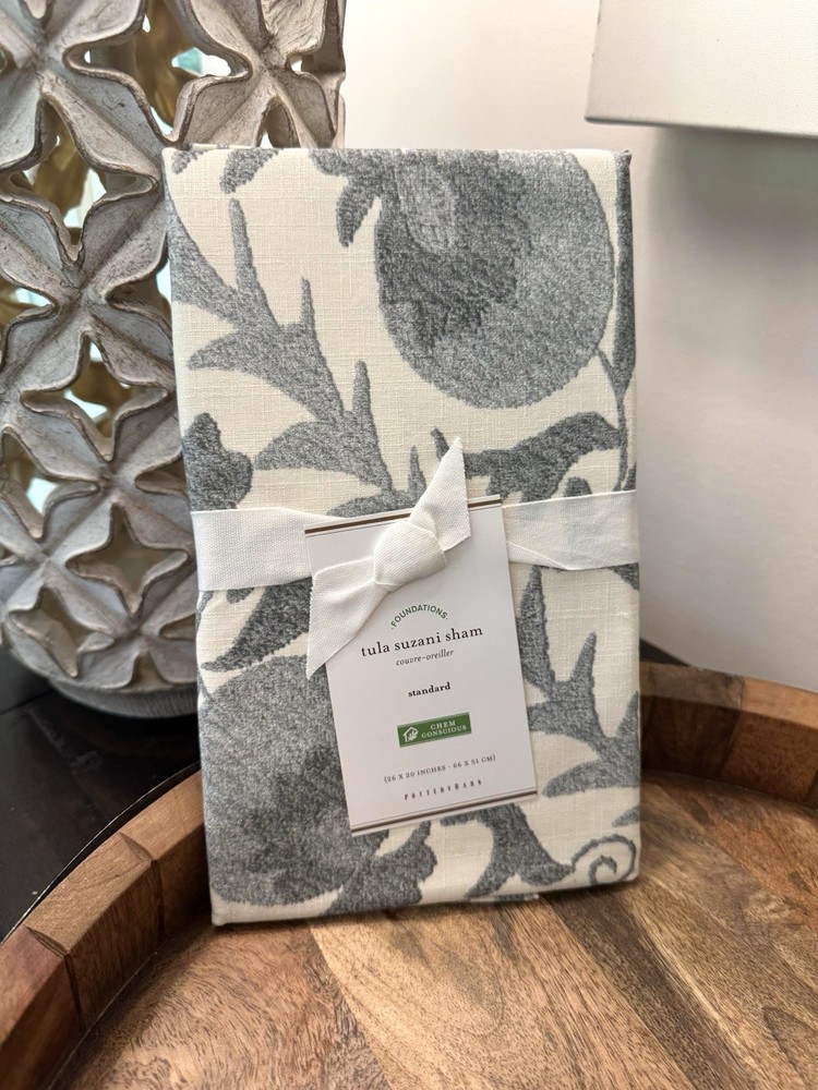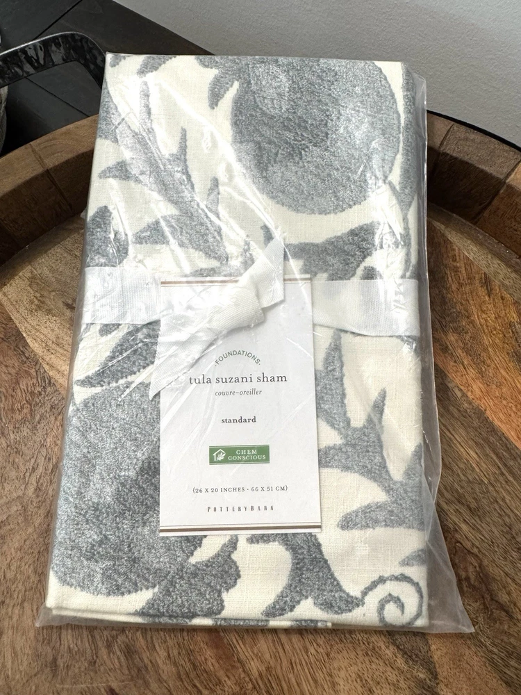 Pottery Barn Foundations Tula Suzani Sham Standard 100% Cotton 26x20 Gray Beige NEW Fast shipping! It is our commitment to ship same day, or next day depending upon the time of day of the order. Satisfaction is guaranteed! Stored in a smoke free and pet free environment. Fragrance free. Please note that photos are a part of the description and the best indication of the condition of an item. If you have ANY questions please ask them PRIOR to purchasing the item. Satisfaction is my goal. So, please give me an opportunity to address any concerns. Iโm always here to help! Customer service is a high priority for me. Thank you for visiting my store!
