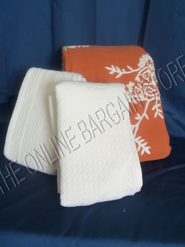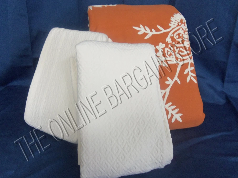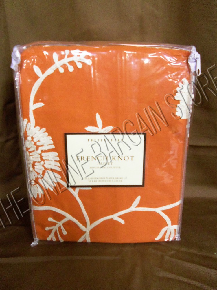 Pottery Barn French Knot Duvet Cover and 2 standard diamond matalassee shams New with tags! Size: Full Queen retail: $199 plus tax/shipping on duvet and $99 on 2 shams.. Dozens of hand-tied French knots and hand-sewn chain stitches create our bedding's intricate floral embroidery. Burnt orange cotton duvet cover features ivory flat piping; the sham has a slim ivory flange. Both reverse to solid orange. Duvet cover has hidden buttons, interior ties and a 6 flap to enclose duvet. Sham has envelope closure . Machine wash. Imported All small items are shipped via Fedex ground. Rates quotes are for continuous 48 states only. Email if you want rate to ship to Alaska, Hawaii or APO, those will have to be done thru USPS and rates can vary. Large items are shipped by common carrier. I will need a contact phone number for those type shipments. Shipper will call ahead to setup a delivery time in which you will need 2 people home to handle the large box(es). When you receive your large item shipment please open and inspect for damage. Please have driver note any damaged sustained to outside or inside of box. Once you sign off that it delivered in good condition you cannot file a claim for damages occurring after the fact. Must be found upon delivery for a claim to be filed and payment to be refunded. Thank you.