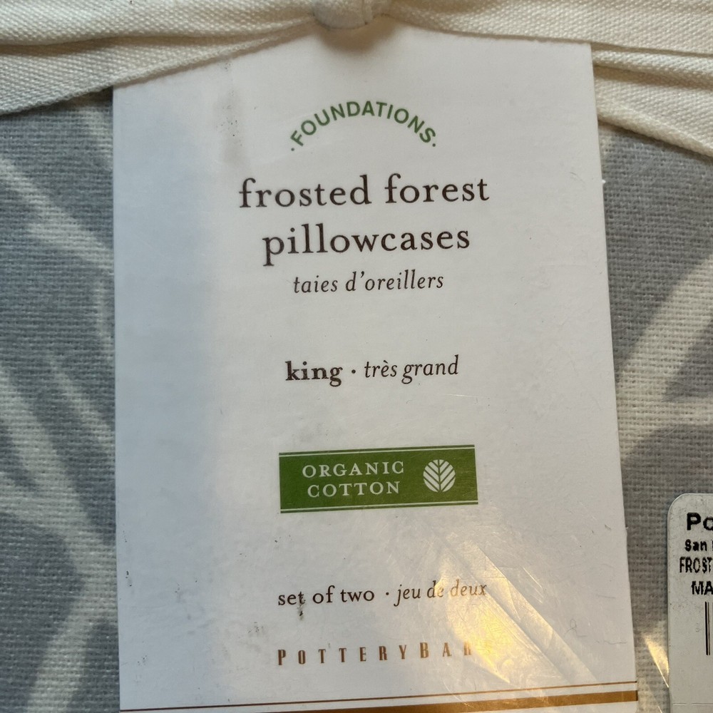 Pottery Barn “Frosted Forest” King Size Pillow cases. Organic cotton flannel. Gray with white winter forest theme. Brand new in pack. Ships next business day via USPS Ground advantage