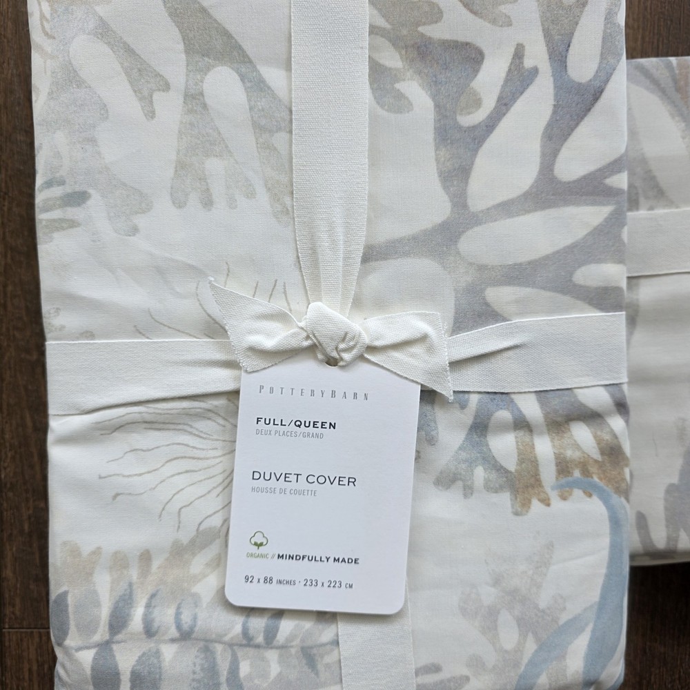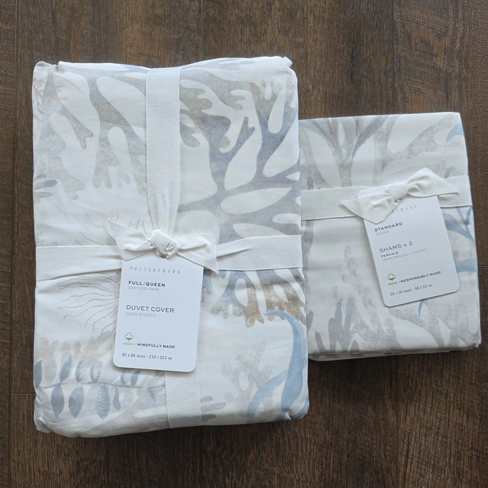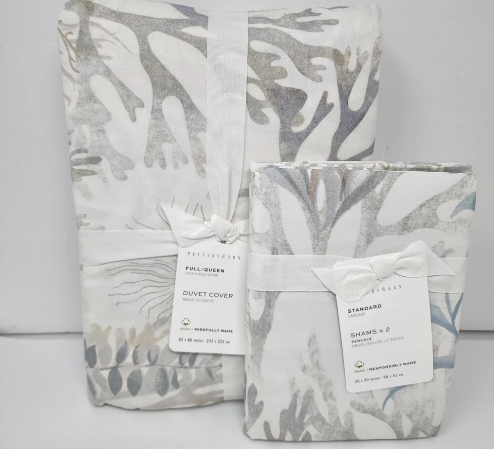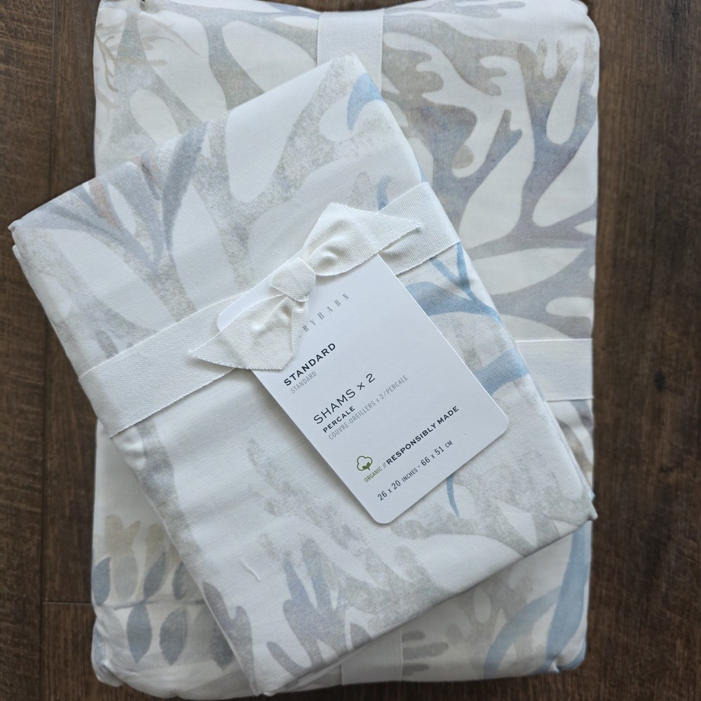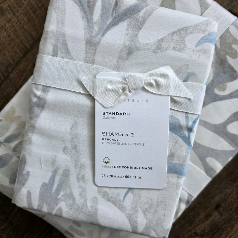 FULL QUEEN 2 standard shams Made from 100% organic cotton. Duvet features interior ties to keep insert in place and has zipper closure; sham features a side closure. Reverses to same print. STANDARD 100 by OEKO-TEX® Certified: tested for 350+ harmful substances to keep you and your family safe from chemicals common to textile manufacturing. Certified to the Global Organic Textile Standard (GOTS) by CU 847084. GOTS is the international gold standard for organic textiles, ensuring high social and environmental standards from fiber to finished product. 200-thread count. Duvet, sham and inserts are sold separately. Machine wash. Imported. xzj1