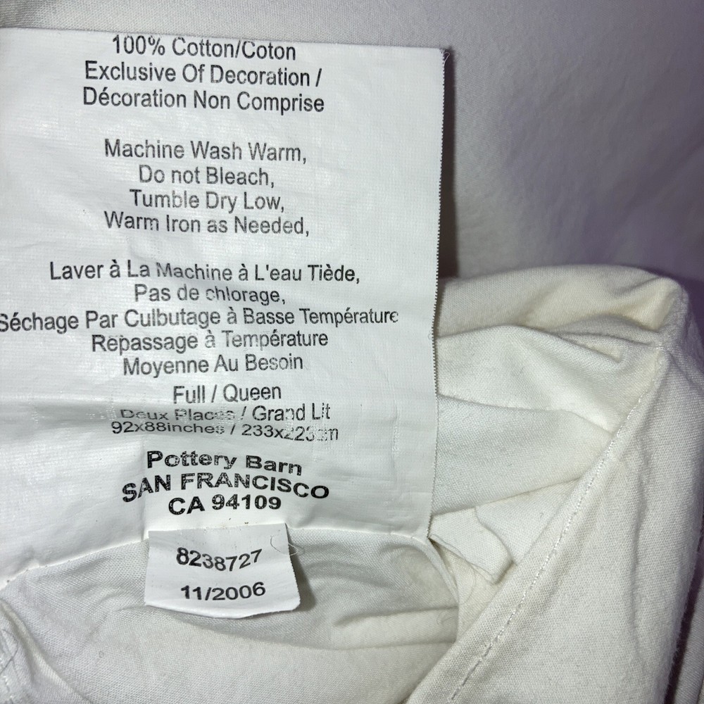Pottery Barn Full/ Queen Off White Duvet with 2 Golden Embroidered Rectangles 46” X 42” Condition is Pre-owned. Seem lightly used if used at all. No holes, stains or rips. Thanks for looking....