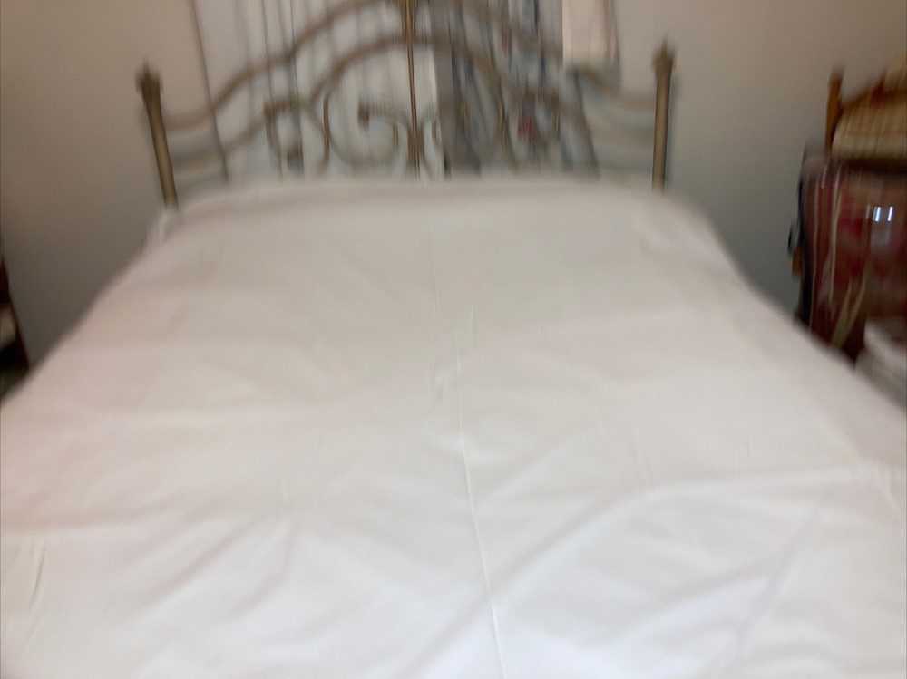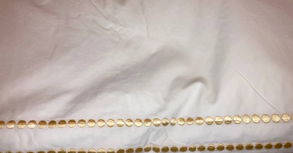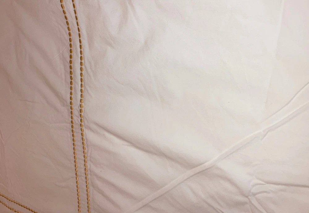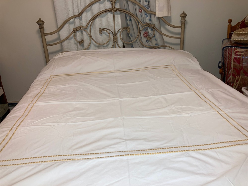 Pottery Barn Full/ Queen Off White Duvet with 2 Golden Embroidered Rectangles 46” X 42” Condition is Pre-owned. Seem lightly used if used at all. No holes, stains or rips. Thanks for looking.