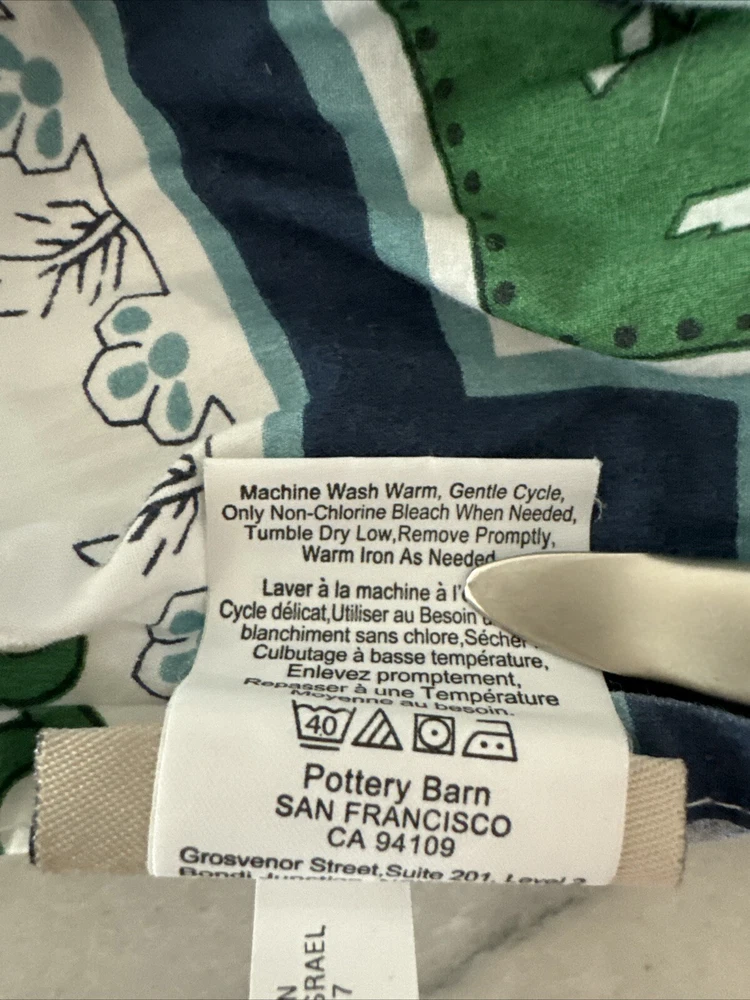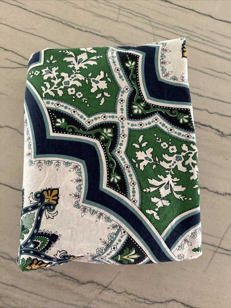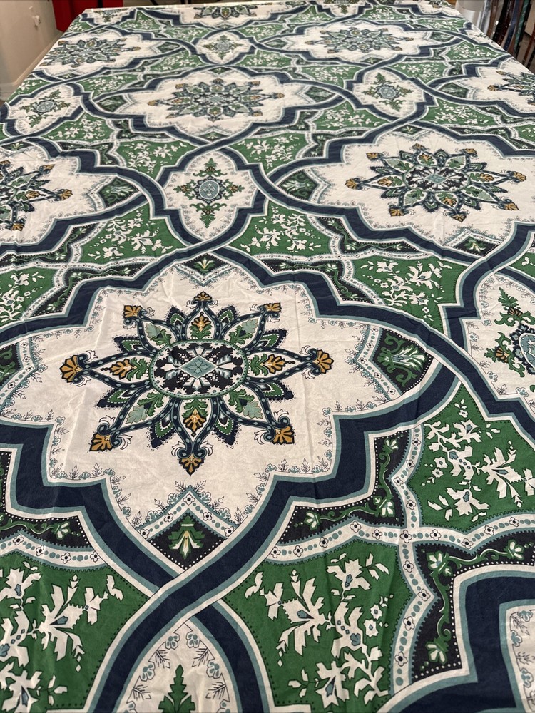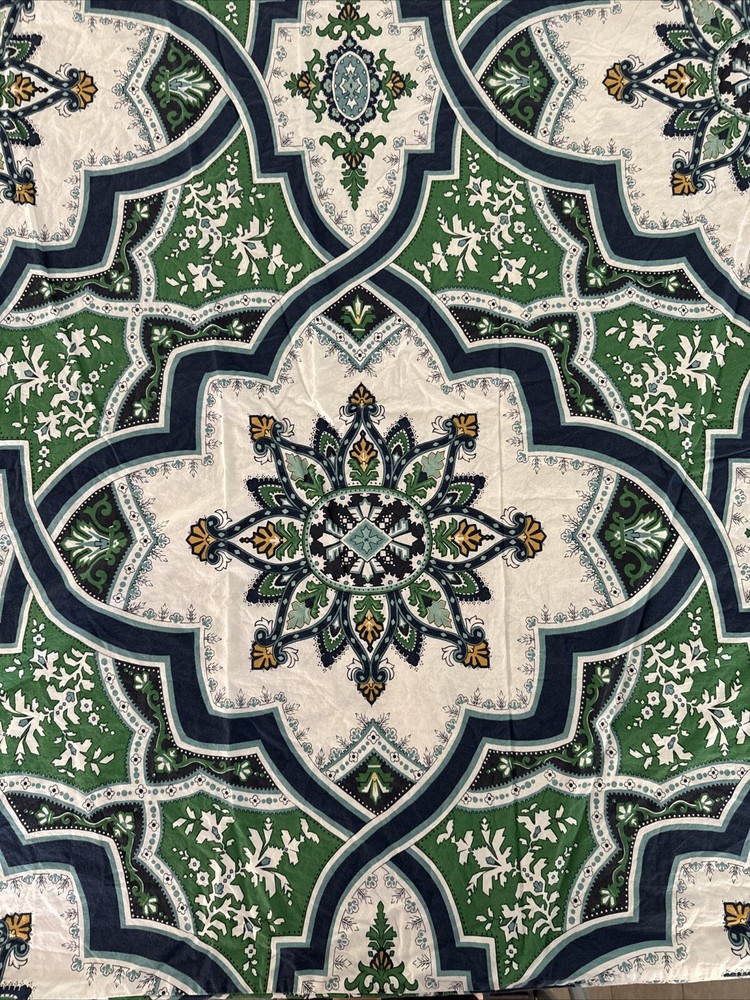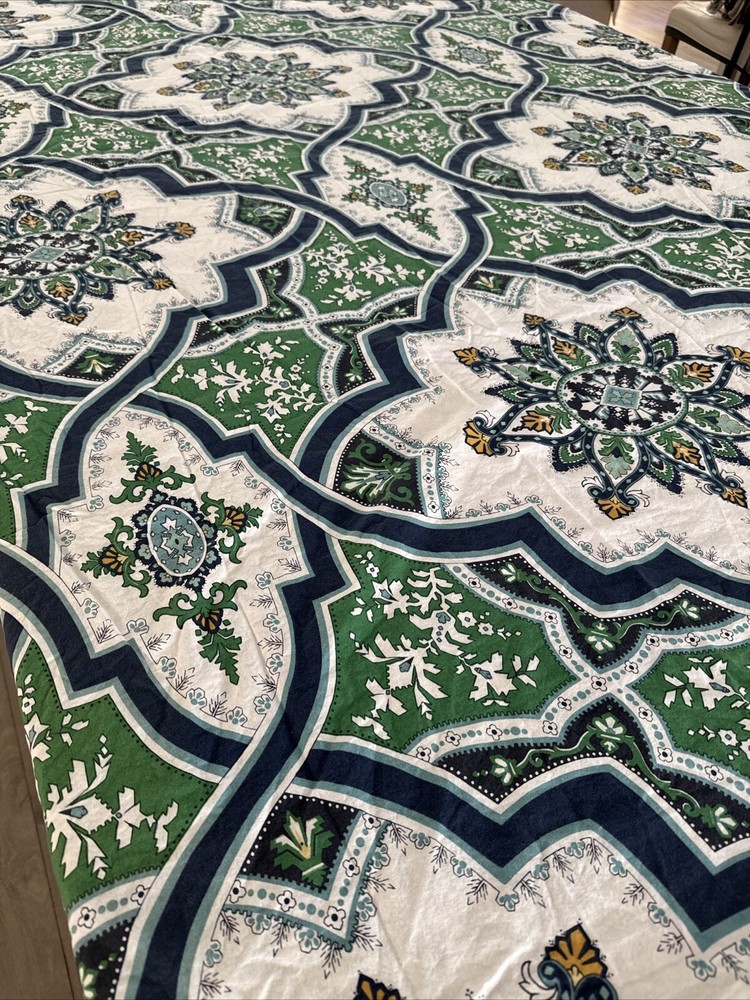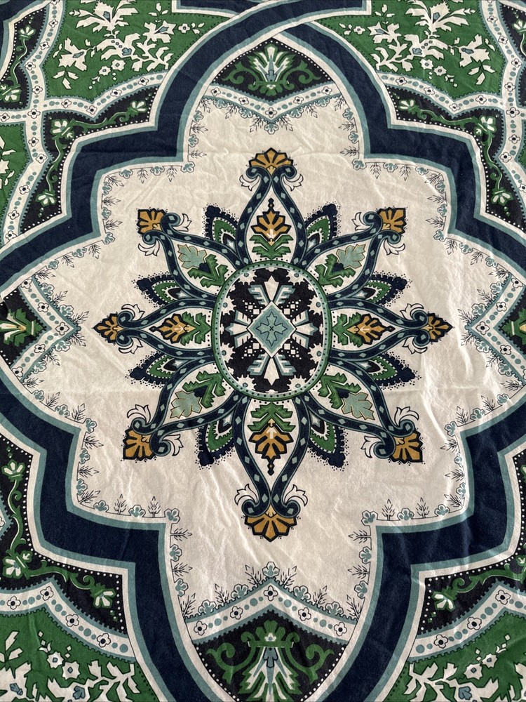 Pottery Barn Full Queen Duvet Cover Ashton Medallion Blue White Green Yellow. There are a couple of spots - see photos, they should come out when washed....