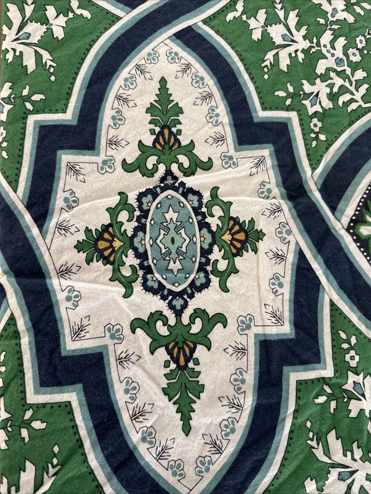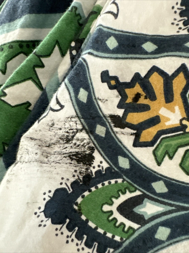 Pottery Barn Full Queen Duvet Cover Ashton Medallion Blue White Green Yellow. There are a couple of spots - see photos, they should come out when washed.
