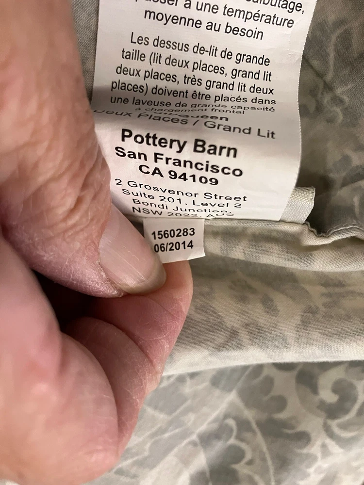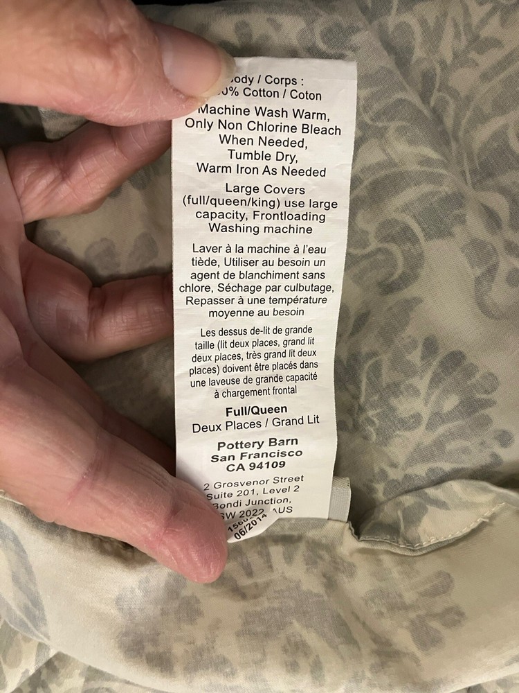 Pottery Barn Full Queen Duvet Cover Samantha Paisley Damask Sateen Gray White 100% cotton Button Closure Good condition. From non-smoking home.
