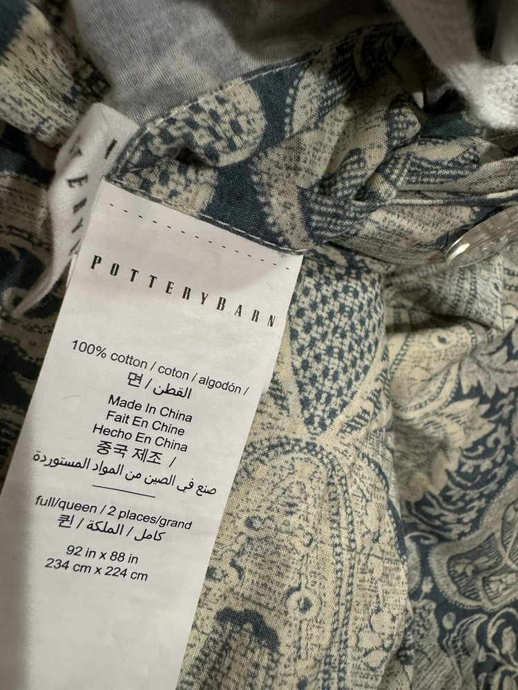 Pottery Barn Full/ Queen Janelle Damask Scroll Floral Duvet Cover 98” X 88”...