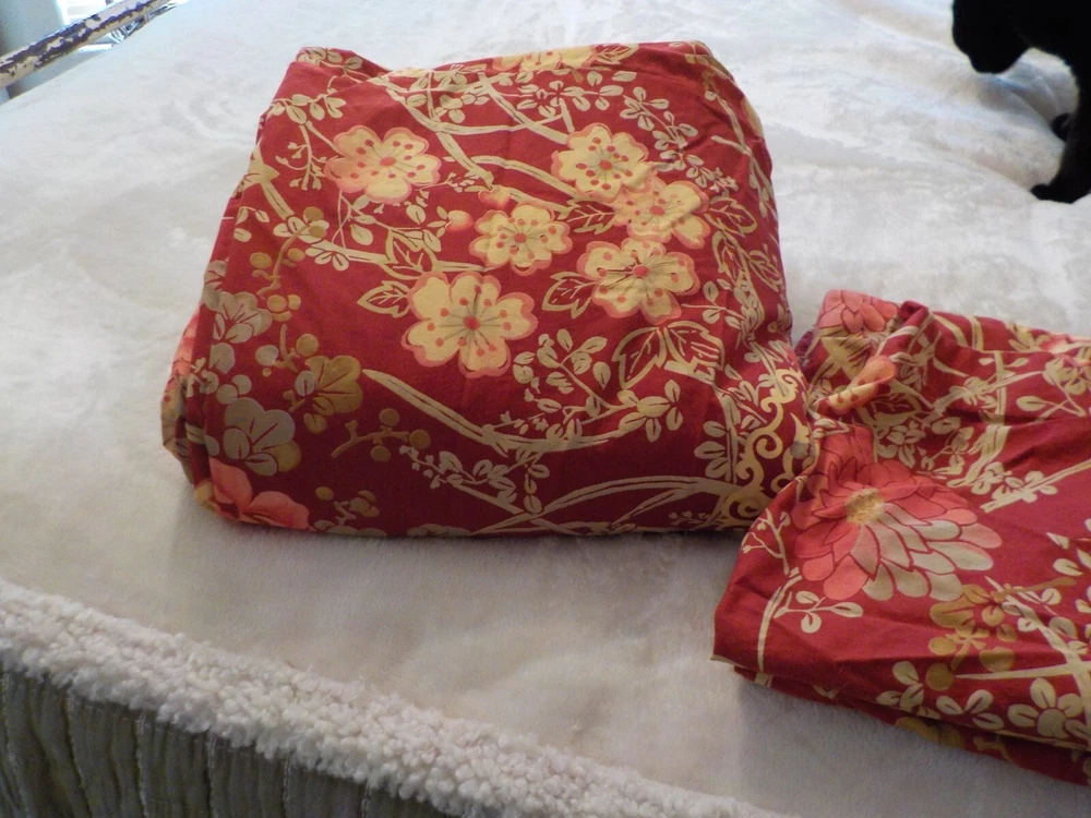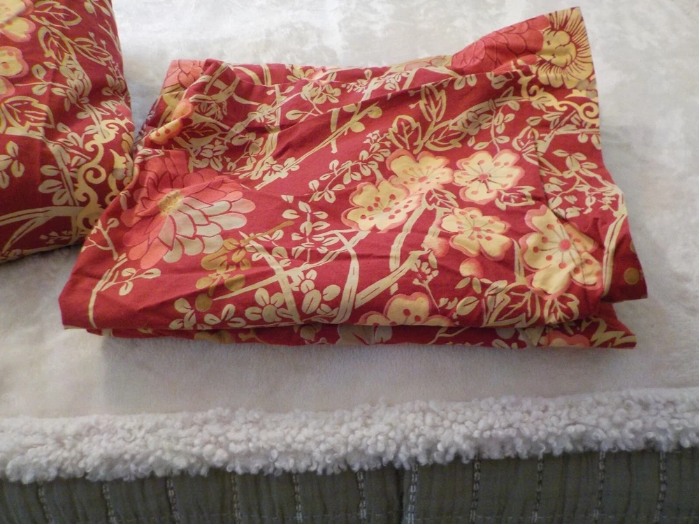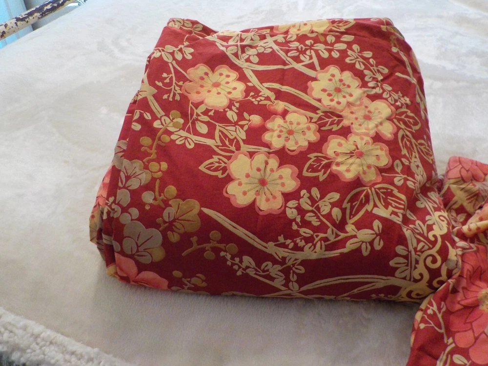Pottery Barn F/Q Duvet Cover with two Shams Standard shams Burgundy red, with light olive green, Rose color, lighter Burgundy, Warm Beige. EUC...