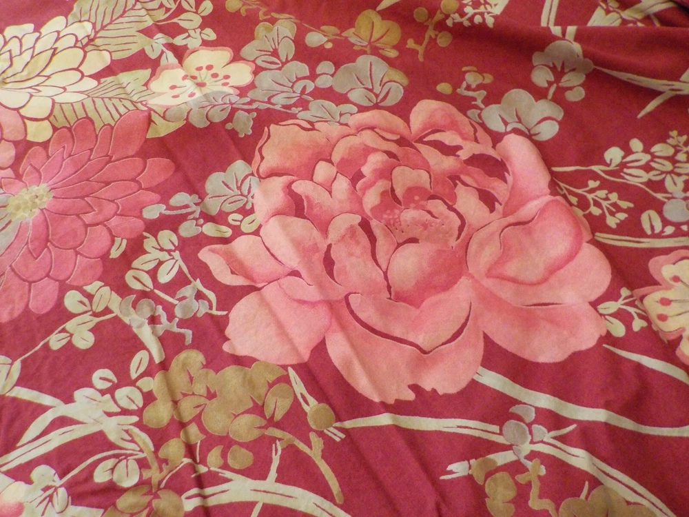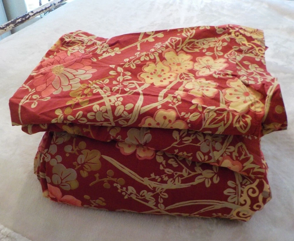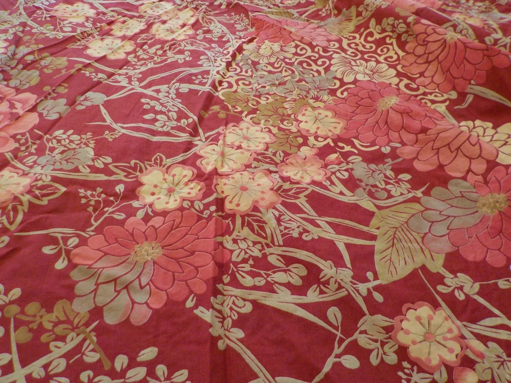 Pottery Barn F/Q Duvet Cover with two Shams Standard shams Burgundy red, with light olive green, Rose color, lighter Burgundy, Warm Beige. EUC