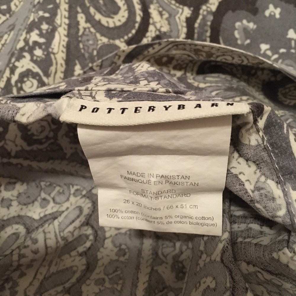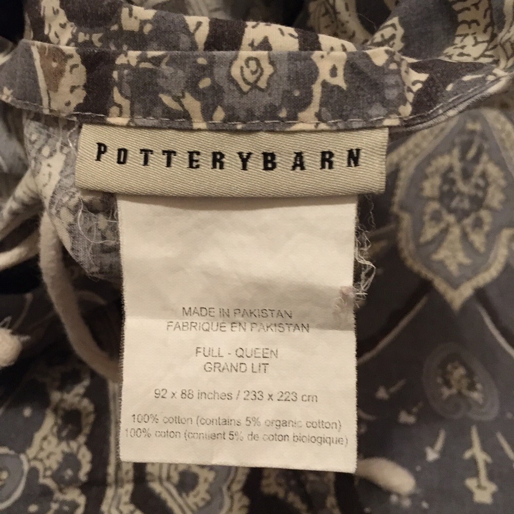 Full/Queen size duvet with 2 standard size pillow shams. Blue/gray/white print. No holes or stains. This was laundered with dye/fragrance free detergent and laundry sanitizer right before listing....