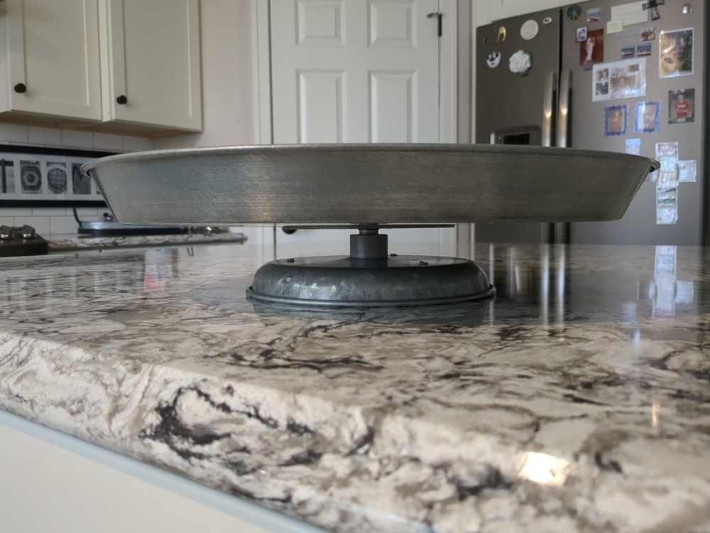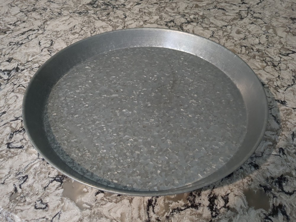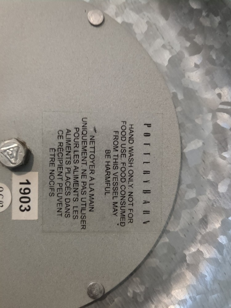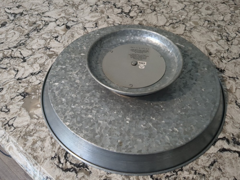 Pottery Barn galvanized lazy Susan. 17-3/4" diameter, 1-1/2" deep. Purchased 3 years ago, only used two or three times. Perfect condition. Rotates smoothly.