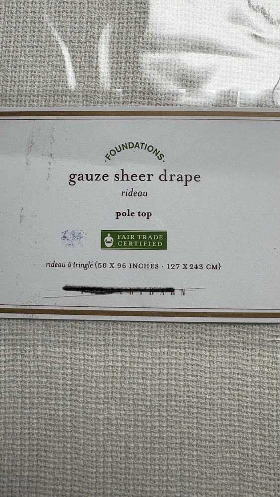 1 PB Gauze Sheer Drapery Panel 50" x 96" "Ivory" color. Light cream/almost white. Rod Pocket New Was stored in a PB warehouse and has a slight warehouse smell.