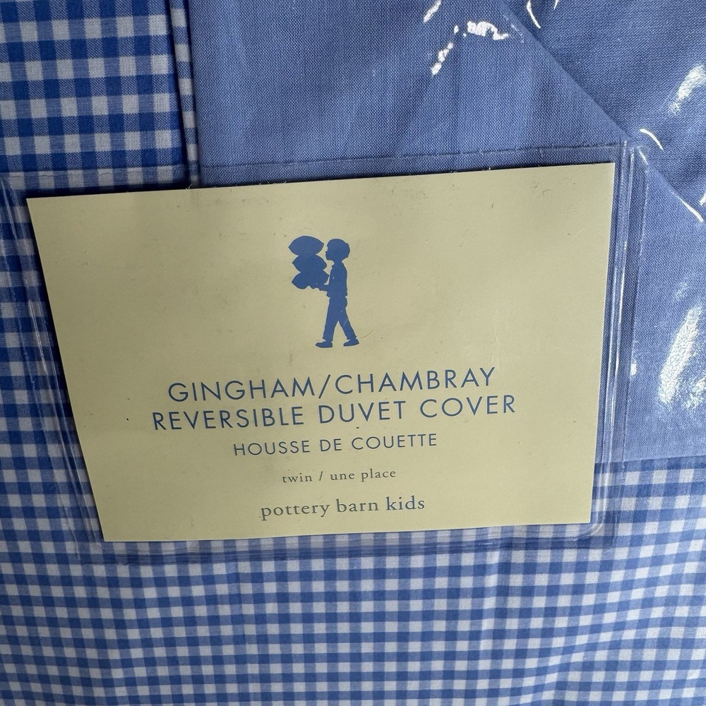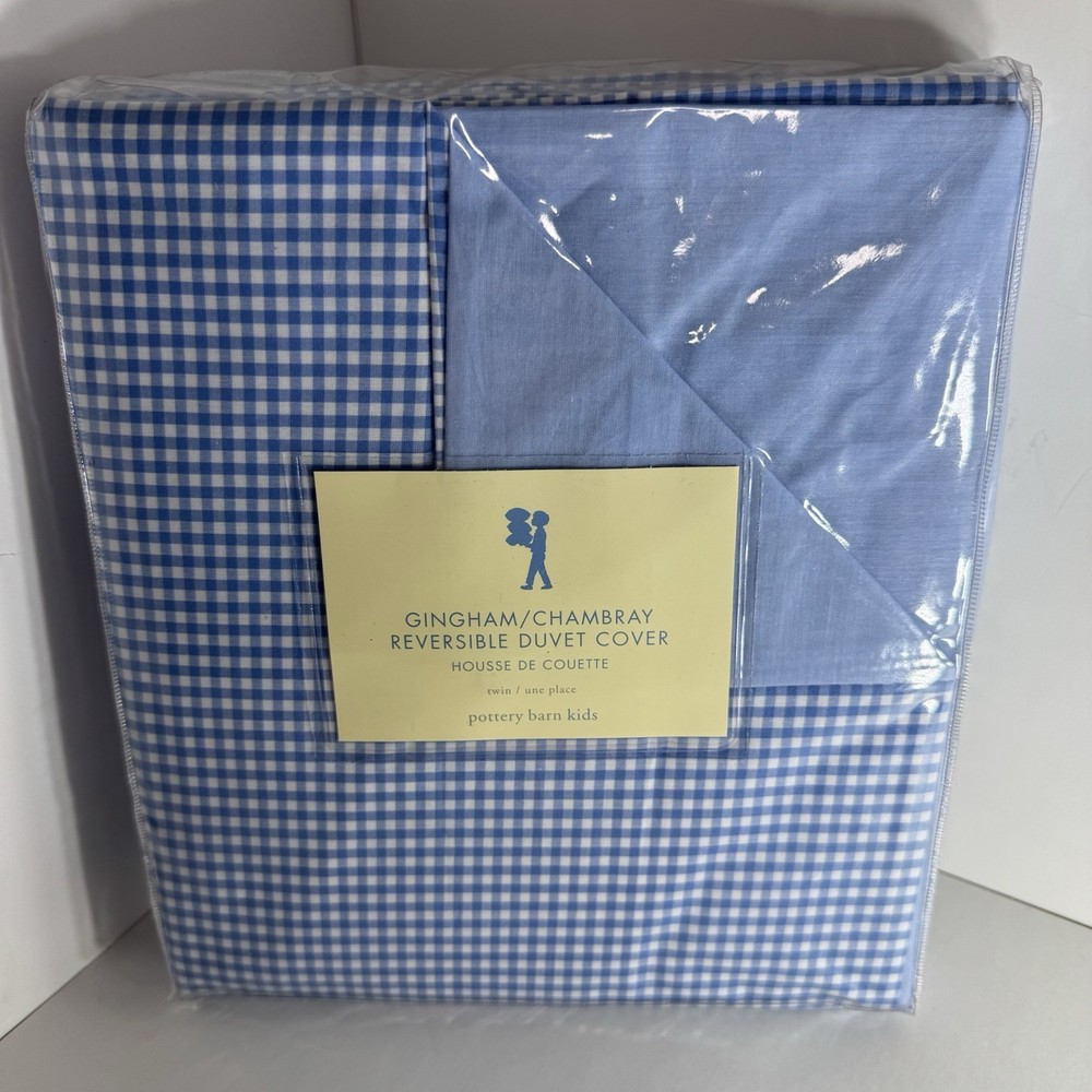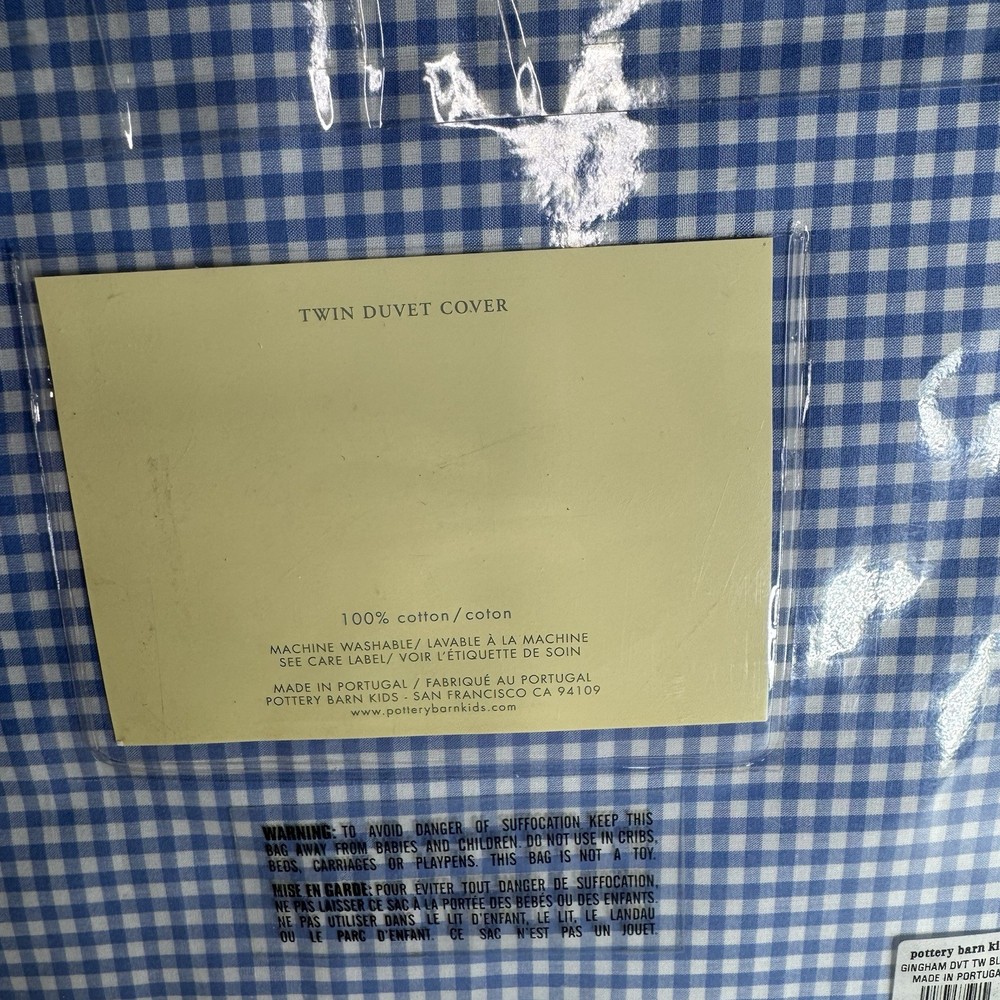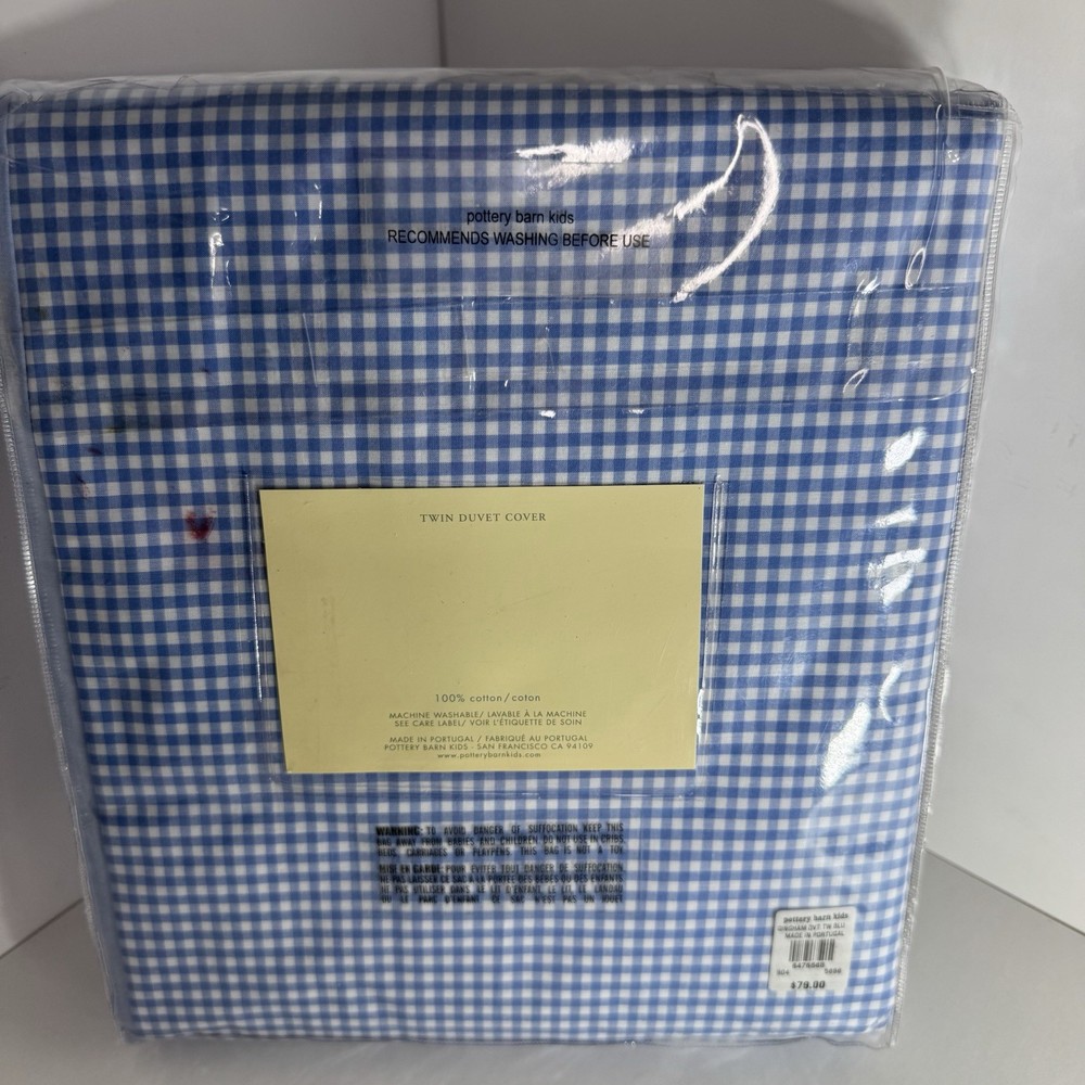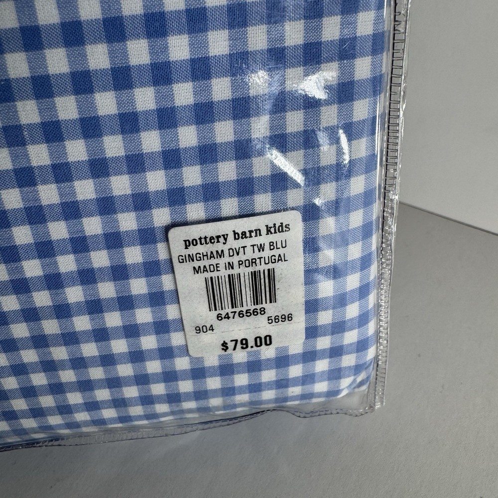 Pottery Barn Gingham Check Duvet Cover Blue Twin No Shams Kids New...