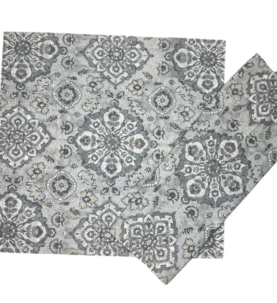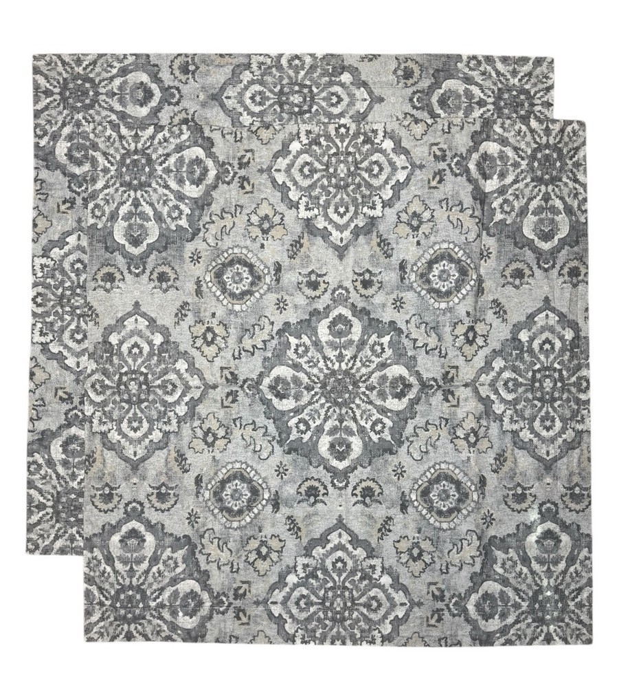Pottery Barn Giovanna Medallion Pillow Shams Set of 2 Euro-sized Shams "Charcoal" color - dark and light gray with some beige and white 100% Cotton 26" x 26" Like new condition without any flaws to mention. The photos are useful for seeing condition and other details. Photos are of the actual items you will receive.
