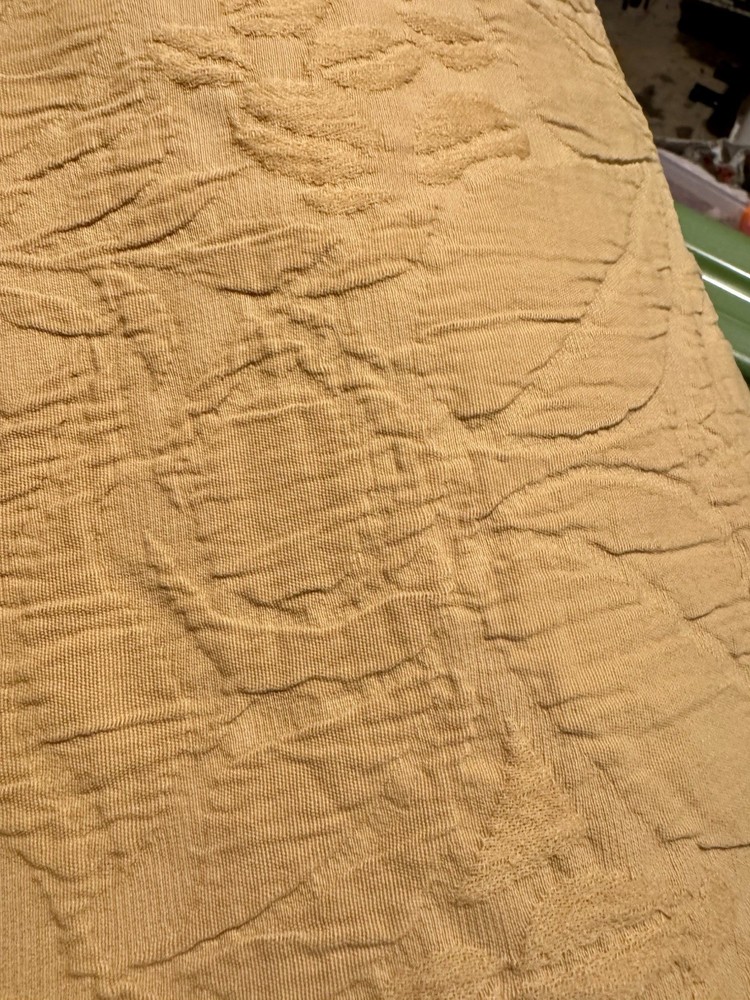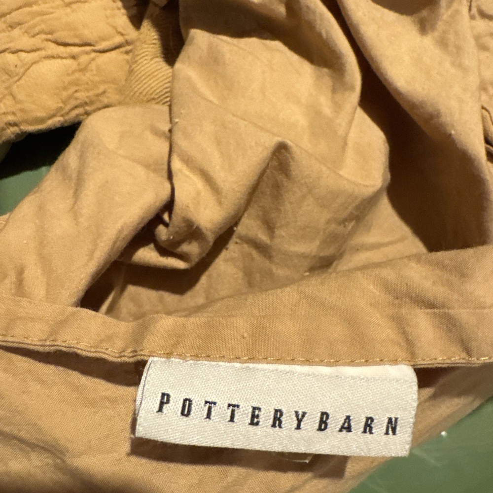 Add a touch of luxury to your bedroom with this elegant Pottery Barn Jacquard duvet cover. Made from high-quality cotton, this king-size cover features a stunning gold color that will make your bed look like a royal palace. The cover is beautifully crafted in Portugal, boasting impeccable quality and attention to detail. Perfect for any bedroom, this duvet cover is easy to remove and wash, making it both comfortable and convenient. The brand name says it all - Pottery Barn - and you won't be disappointed with this high-end bedding item. Indulge in the softness and sophistication of this Portuguese-made duvet cover and enjoy a luxurious night's sleep every night. Stunning, no flaws