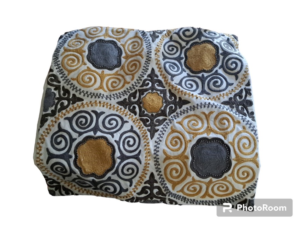 Pottery Barn Gold Medallion Gray Bead Embroidered Sham 20x20. Condition is Pre-owned. Shipped with USPS Ground Advantage....