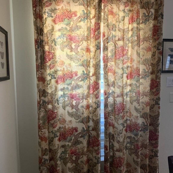 POTTERY BARN CAMILLA DRAPES Beautiful FLOWERING drapes. Imported. Auction is for TWO drapery panels in 50 in. W by 84 in. L Color is NEUTRAL (background color is a CREAM) Item is USED in GREAT CONDITION! A d d i T i O N a l P h o T O s A v a i L a B Le U p O n R e Q u e S T PURCHASED DIRECTLY FROM POTTERY BARN. AUTHENTIC.