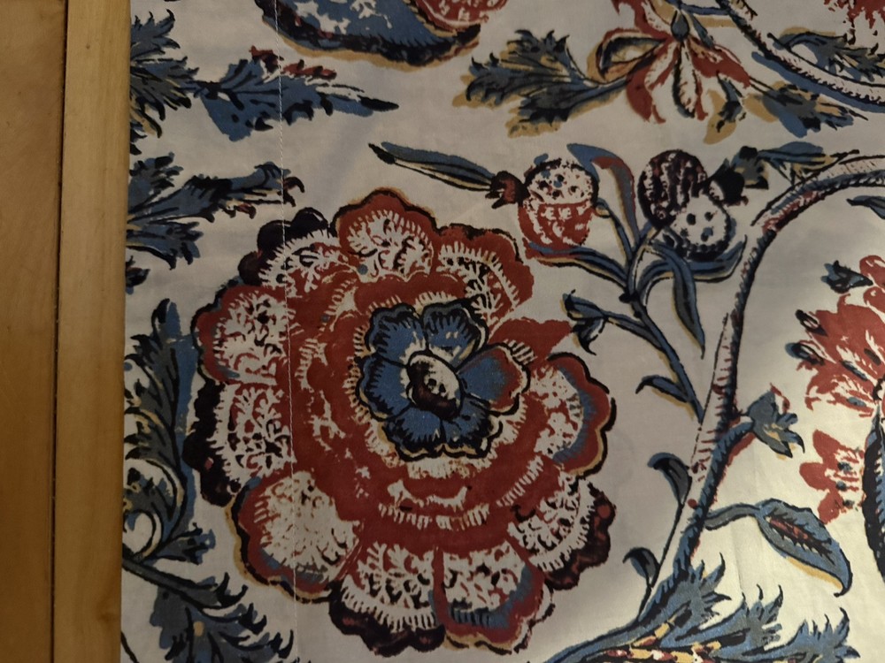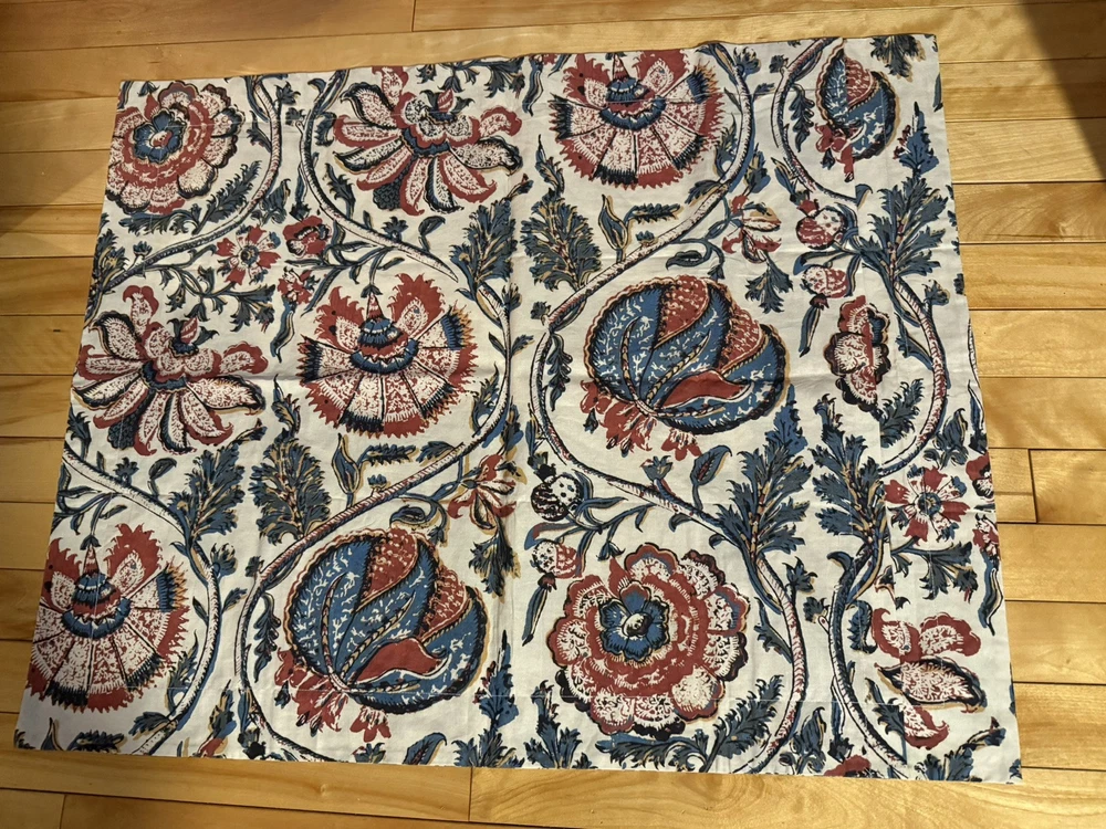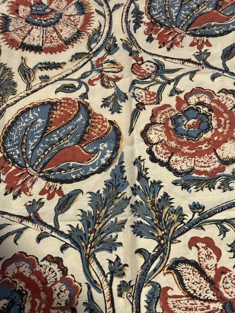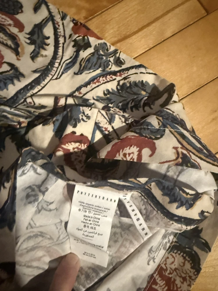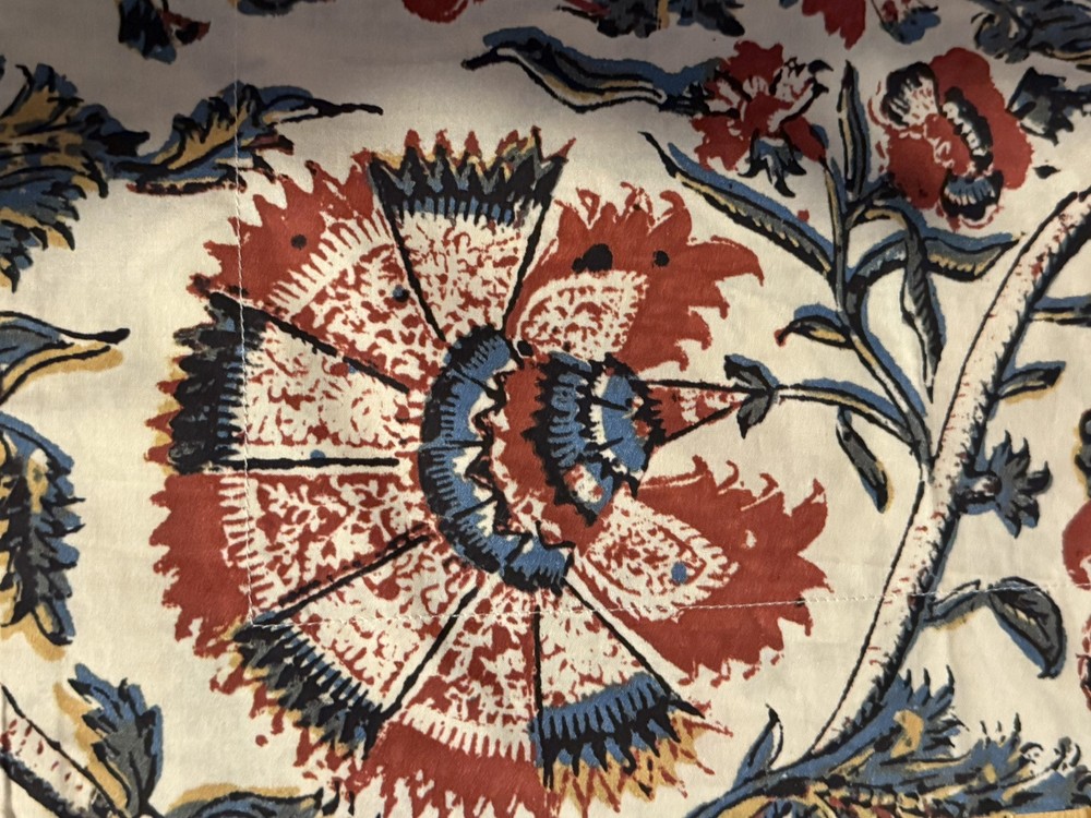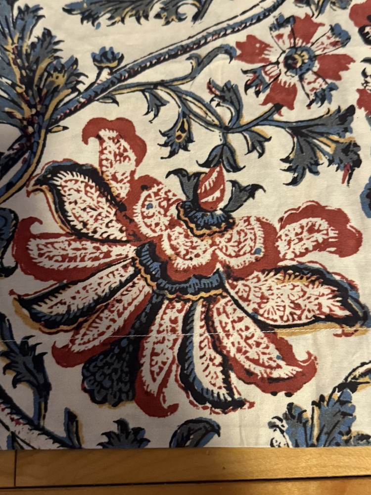 Rare Pottery Barn HALIE Floral Pillow Sham 100% Organic Cotton Standard Size 26”X20” Large Rust Blue with Mustard & Black Accents Flowers on Cream Machine Washable. Excellent; Like New...