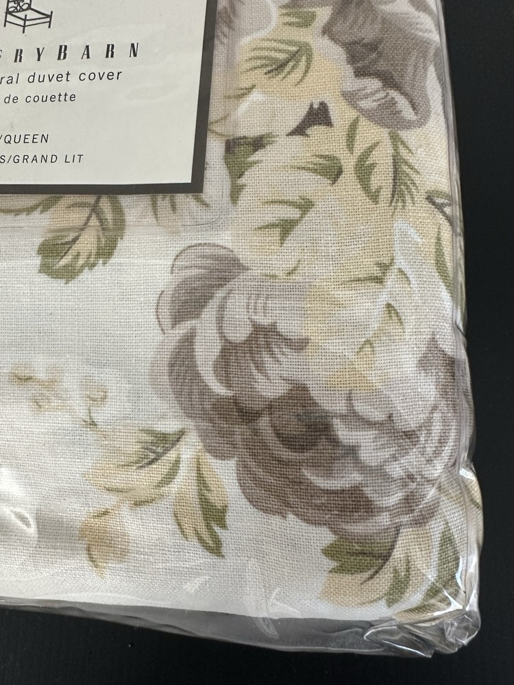 Pottery Barn ~ HAYDEN Floral Duvet Cover Full / Queen 55% linen / 45% cotton Beautiful neutral color palette features a cream/ivory colored background with flowers in soft shades of tan, brown, yellow and green. NEW ( old stock ) older hard to find pattern. Product is new and unused and comes in original packaging. Any questions, please ask prior to purchase. Please check out my other treasures! New and hard to find items listed weekly. I usually offer 4 shipping options, so please compare and select the best option for you. I am always happy to combine items to save you money on shipping costs. Please request PRIOR to making payment. Thank you for browsing my store, I greatly appreciate it!