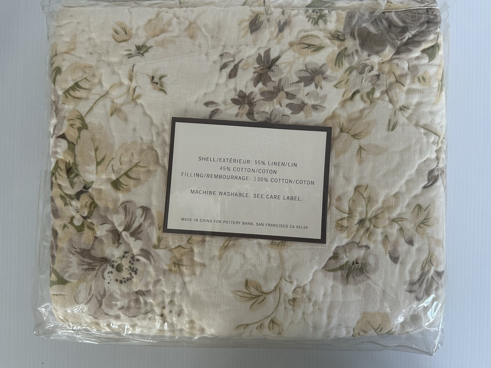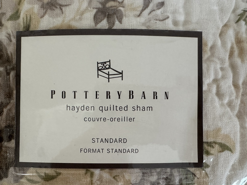 Pottery Barn ~ HAYDEN Quilted Pillow Sham. Size: Standard. Pretty neutral tones with floral pattern. NEW (old stock) in original packaging. Older, hard to find pattern. There is one area that the fabric does have a flaw, see last photo for details. Any questions, please ask prior to purchase. Please check out my other treasures! New and hard to find items listed weekly. I usually offer 4 shipping options, so please compare and select the best option for you. I am always happy to combine items to save you money on shipping costs. Please request PRIOR to making payment. Thank you for browsing my store, I greatly appreciate it!