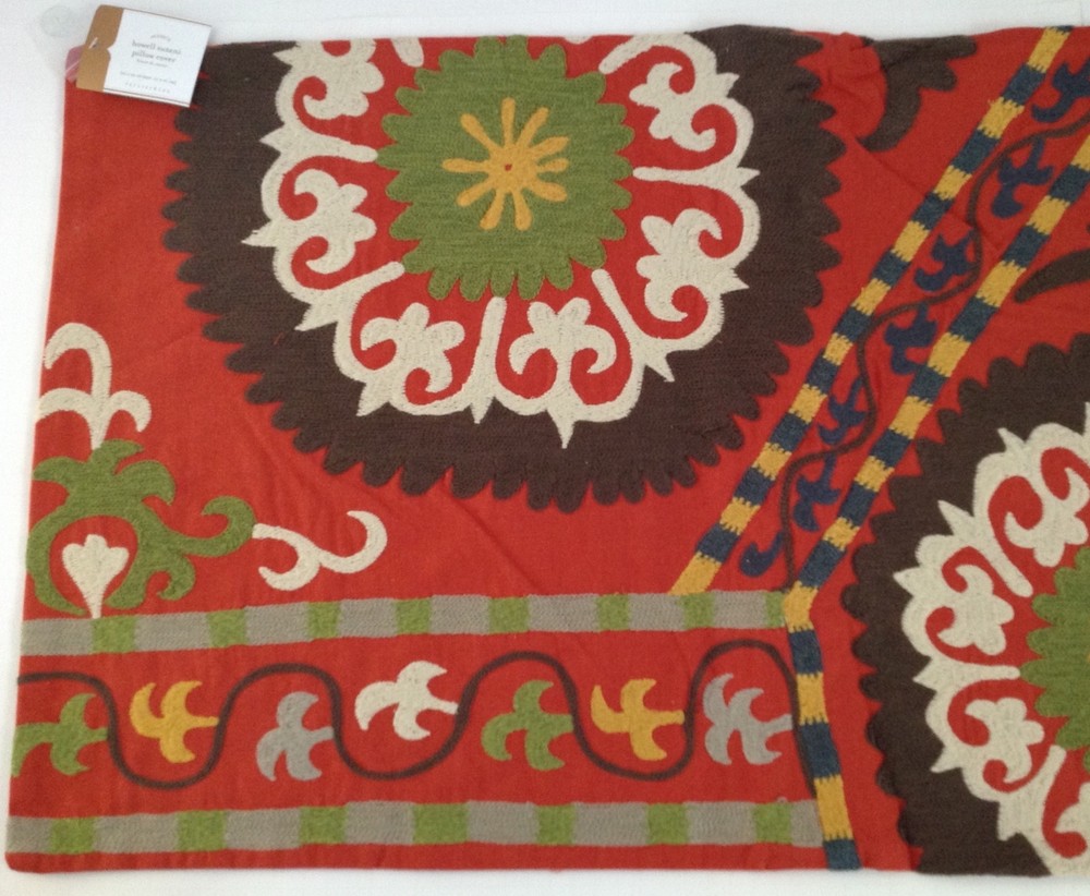 POTTERY BARN HOWELL SUZANI LUMBAR PILLOW COVER NEW WITH TAGS Size: 20" x 36" Woven of 100% cotton slub. The rich colors depict a carnation motif and the design is inspired by an antique Uzbekistan suzani sewn as a wedding gift. Button closure. Insert sold separately. Machine wash. Imported. Fast shipping from a smoke-free, pet-free home. Thank you for looking. Feedback from buyers: * "This is, by far, the best shopping experience I’ve had ever. Period. This seller went above and beyond to make sure she did every single thing possible to get me the sheet set I’d ordered. And then she followed up with a generous thank you. I’ve never had so much fun buying something!" * "The seller could not have made it any easier to make a purchase. The communication concerning the status of shipping and any follow up questions was quickly answered. This is what real customer service feels like. I would purchase from this seller again!" * Such a wonderful seller and experience working with her! I truly appreciate the opportunity to connect & the special and kind messages. Above and beyond and an exceptional experience from beginning to end. I certainly hope we do business again and keep in touch!! Marji, you are a very special lady!!! Thank you again! Highly recommend seller! Shipped quickly and packed with thought and care! Blessings always sweet friend!❤️🕊️