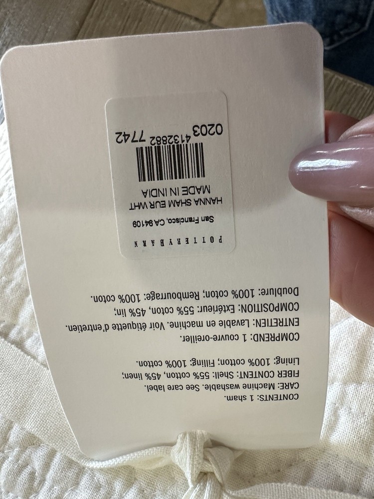 Just got this Pottery Barn sham and it’s gorgeous! The quilted texture adds such a cozy, elegant touch to my bed. It arrived brand new with tags, perfectly crisp and white. The Euro size fits my pillows beautifully, and the quality feels luxurious. So happy with this find—looks way more expensive than it was!