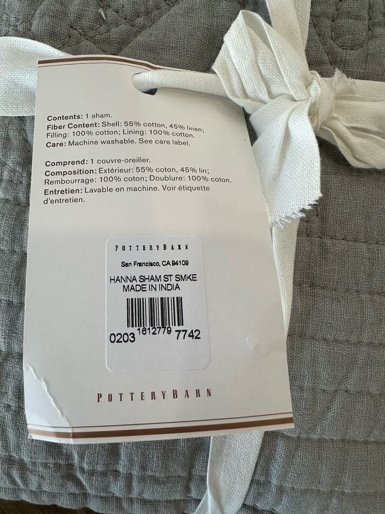 new with tags 1 Pottery Barn hanna Quilted Sham in smoke gray in a standard size...