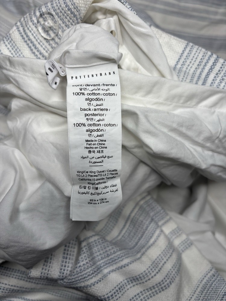 Pottery Barn Hawthorn Striped Cotton King/Cal King Duvet Cover - chambray- In EXCELLENT CONDITION!! No spots / stains Smoke & pet free
