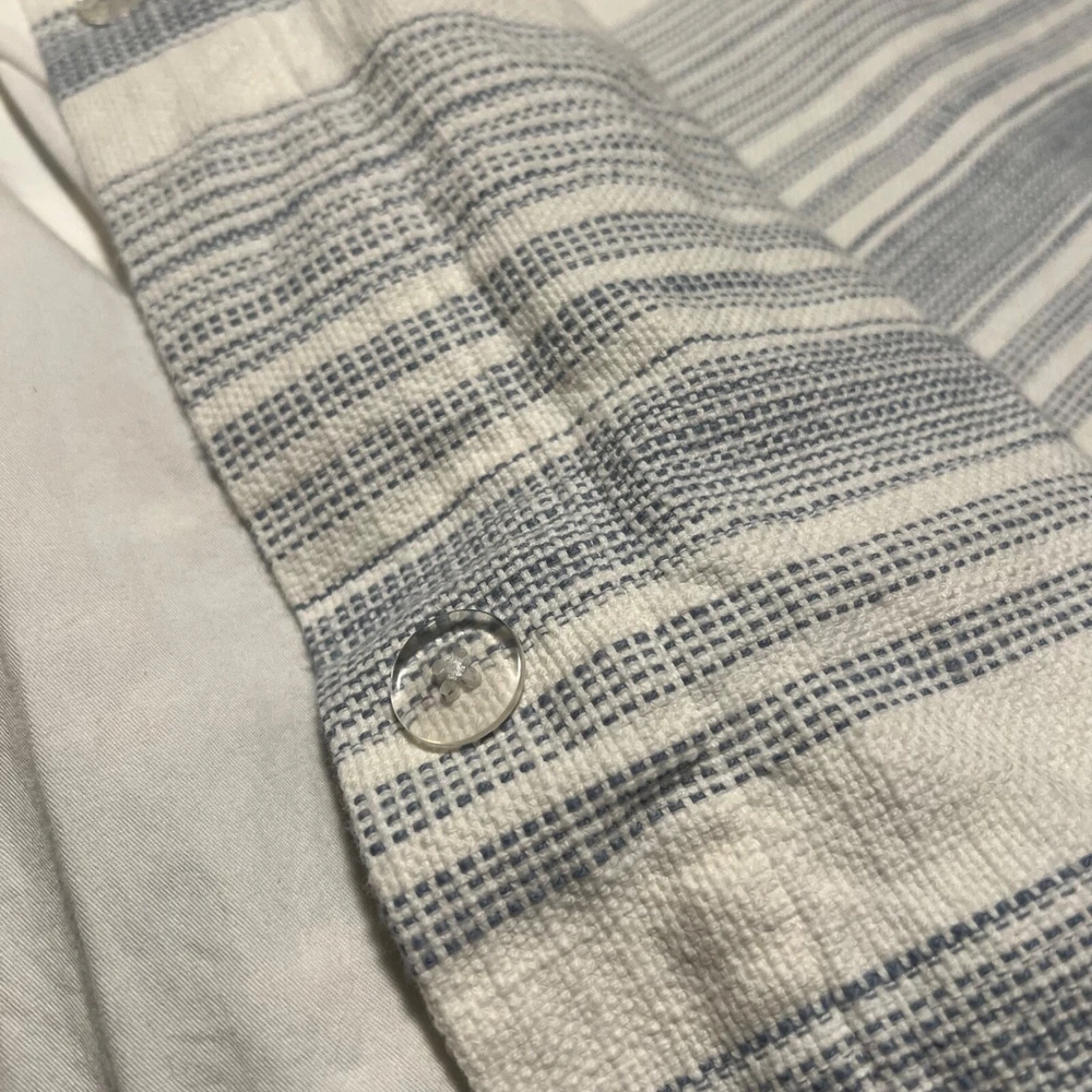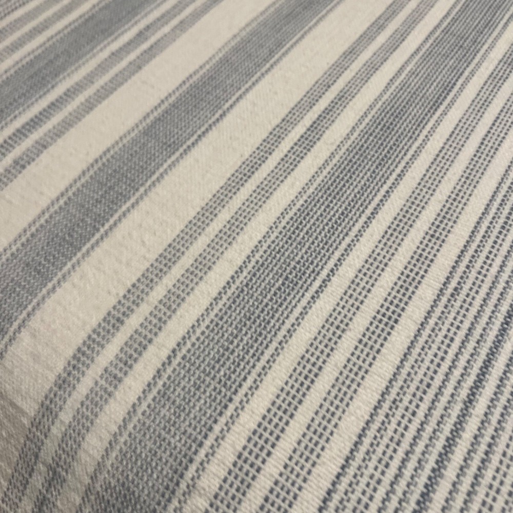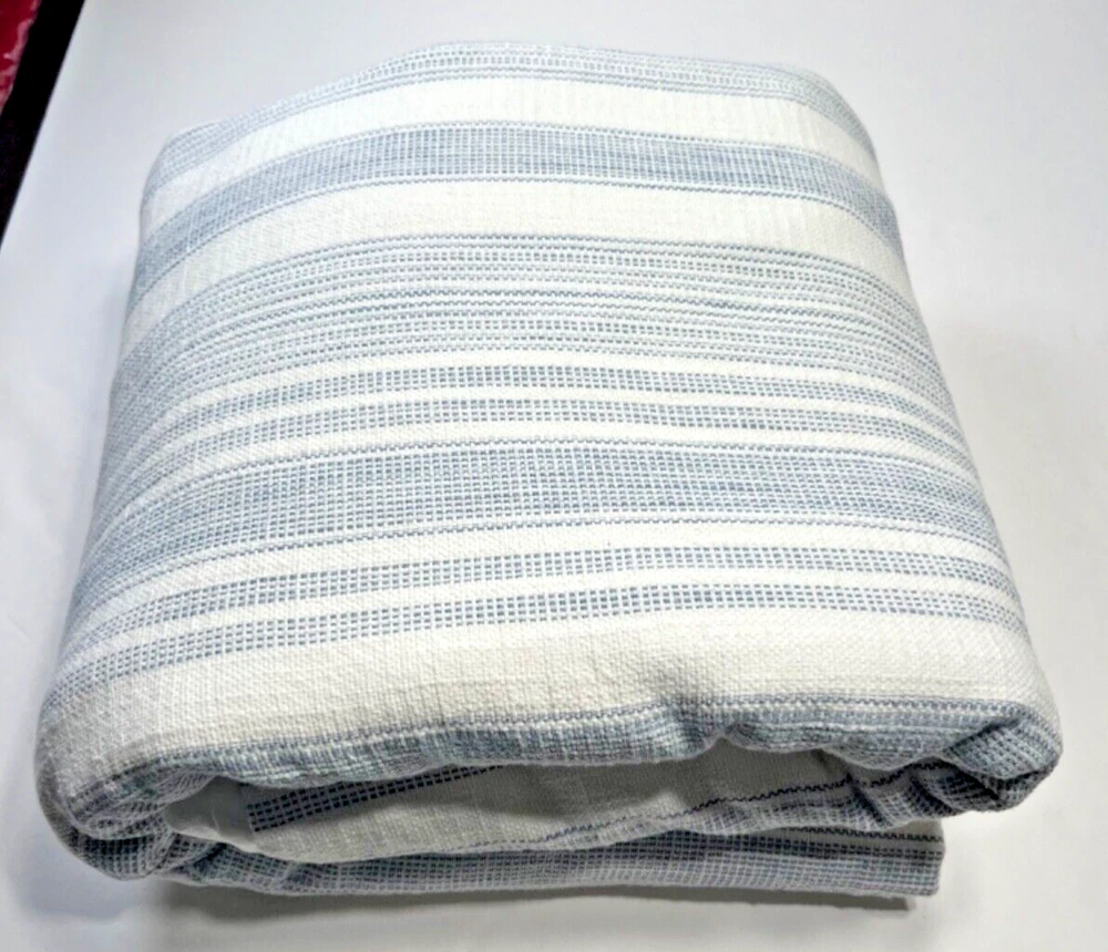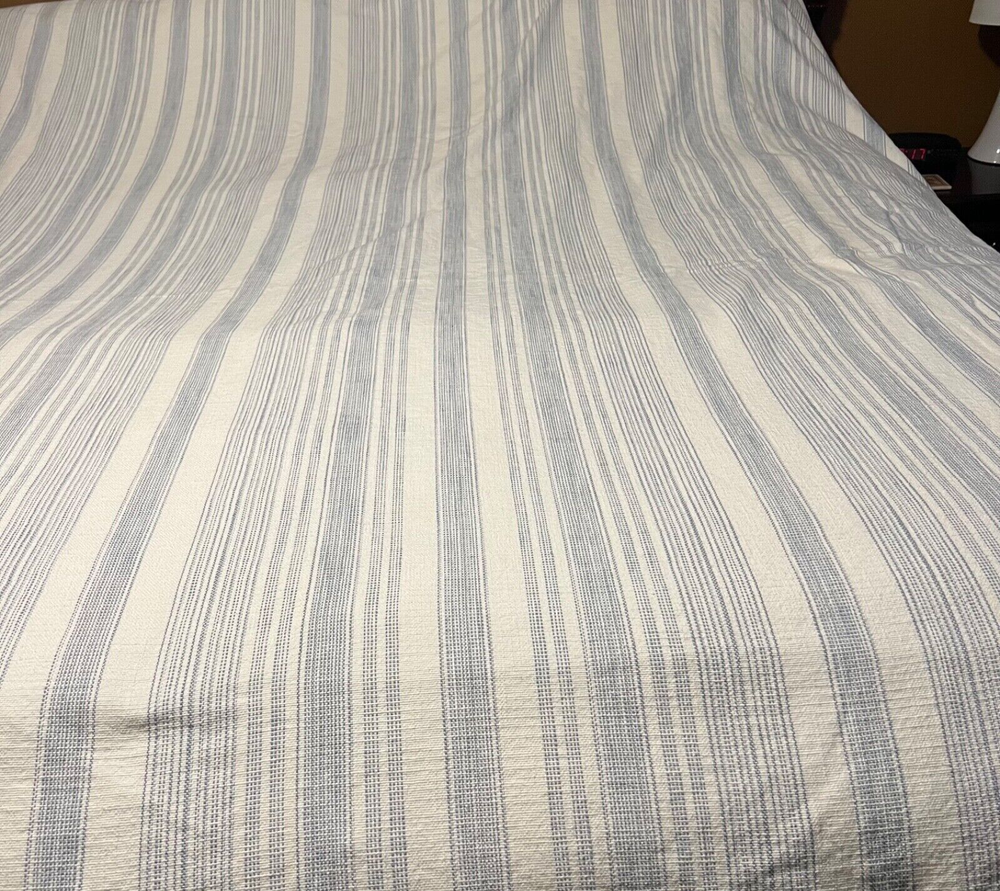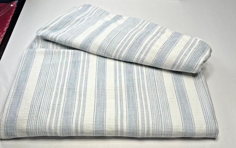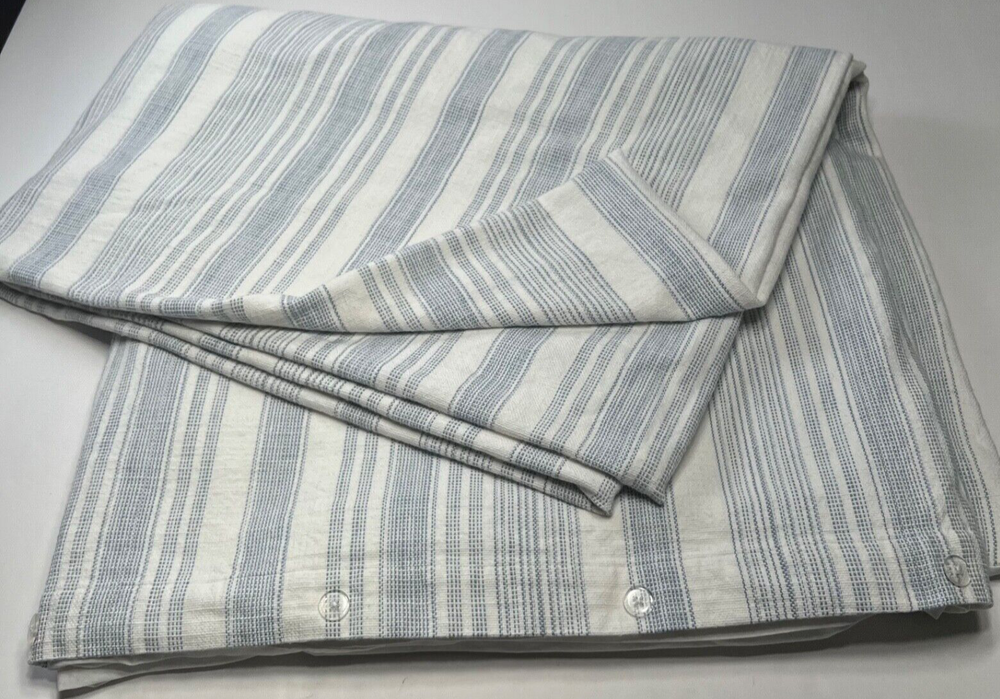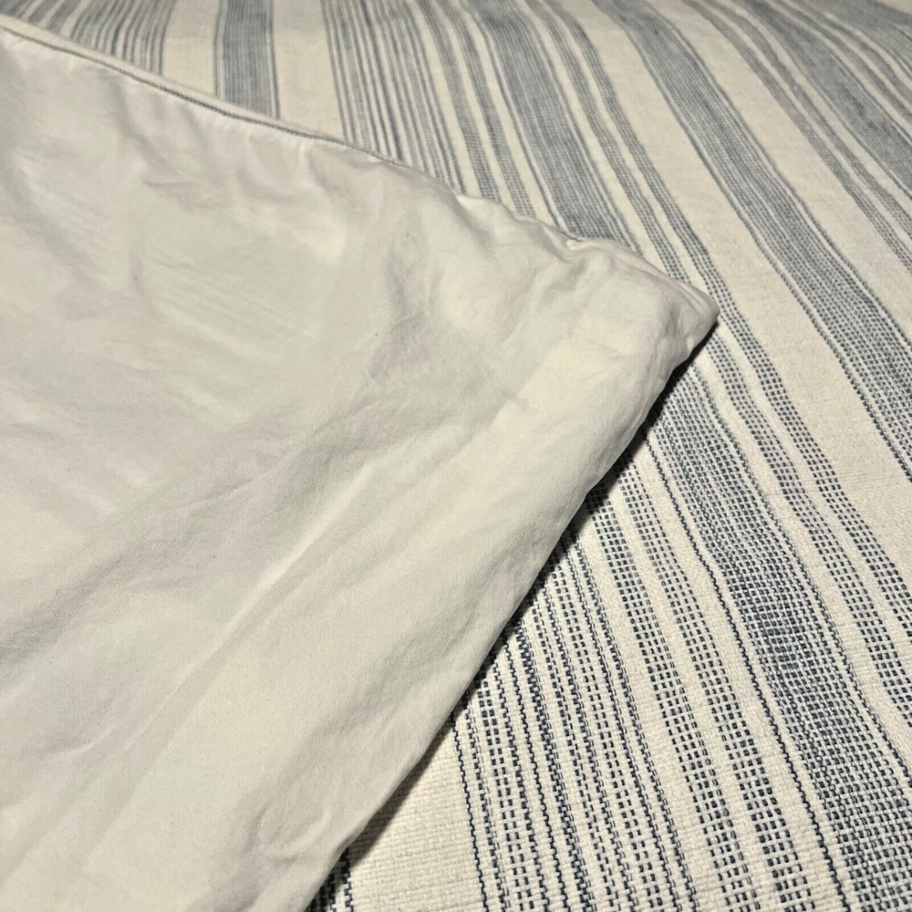 Add a touch of sophistication to your bedroom with this Pottery Barn Hawthorne Stripe duvet cover. The blue and white stripe pattern is perfect for any color scheme, while the king size ensures you have plenty of room to spread out. Made of 100% cotton, this duvet cover is soft and comfortable, making it the perfect addition to your bedding collection. The Pottery Barn brand is known for its quality and style, and this duvet cover is no exception. Pre-owned, in good condition. C548