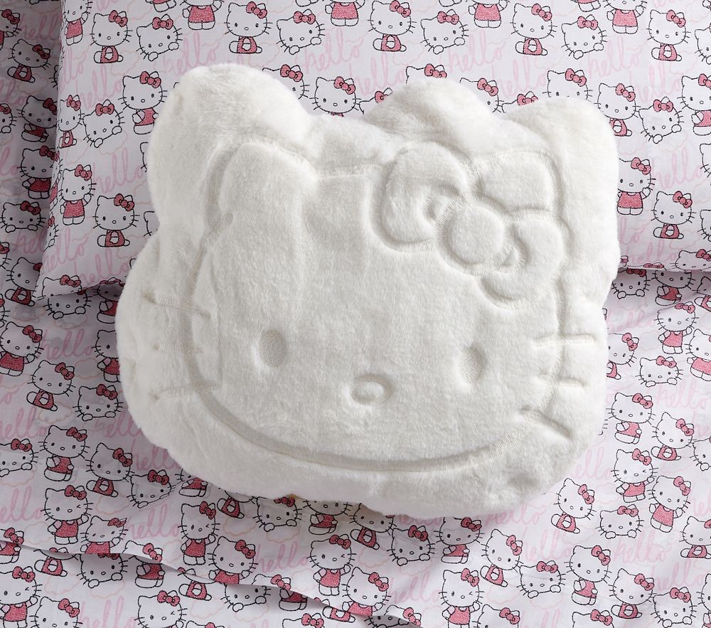 This is a Pottery Barn Hello Kitty® Magical Faux Fur Shaped Pillow. It is a standard sized pillow made of faux fur and is shaped like Hello Kitty. It is suitable for a bedroom and is part of the Kids ...