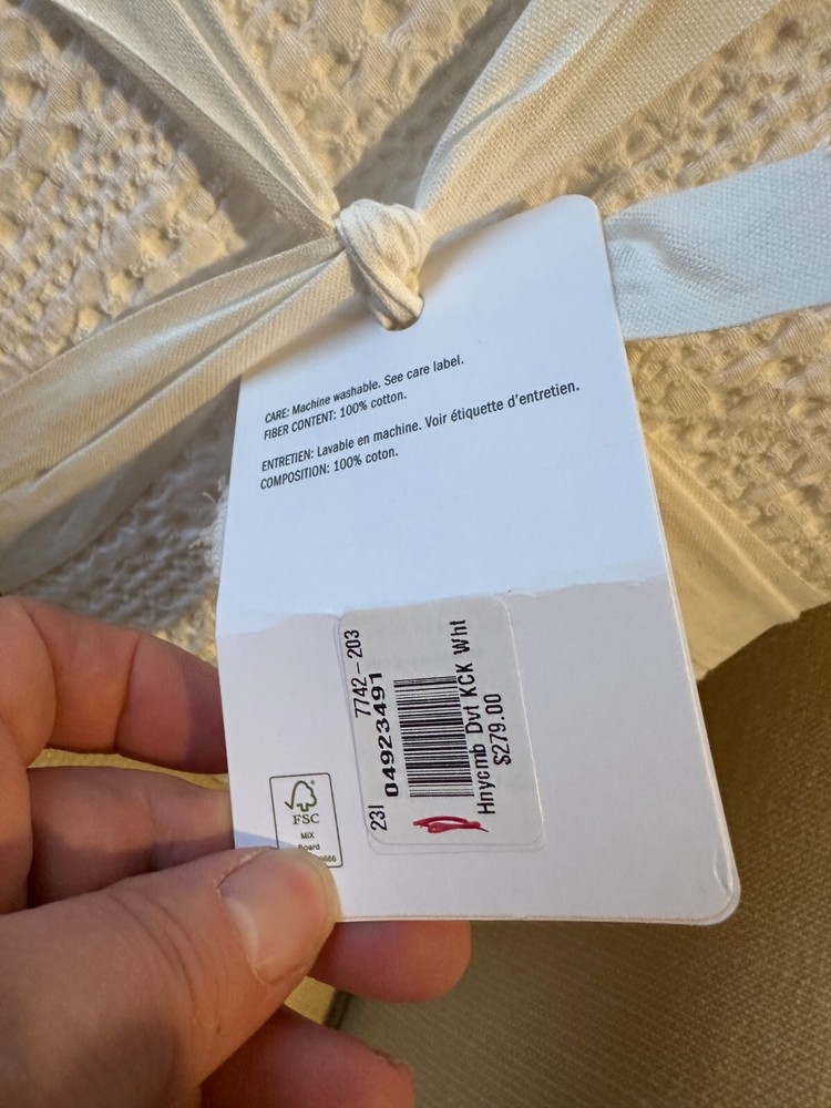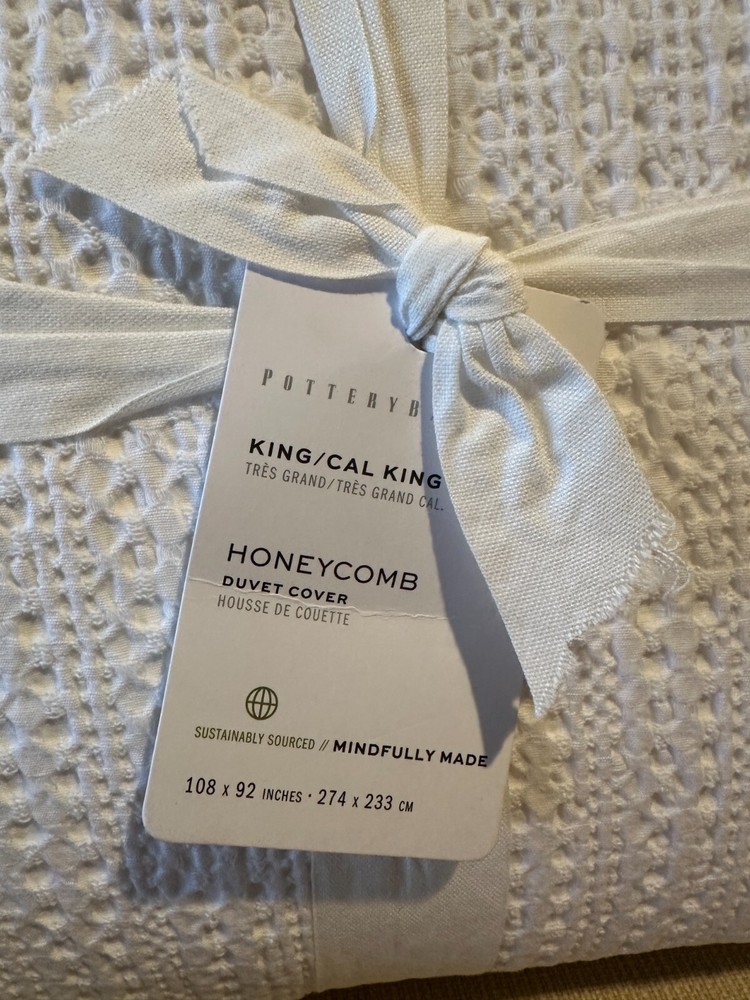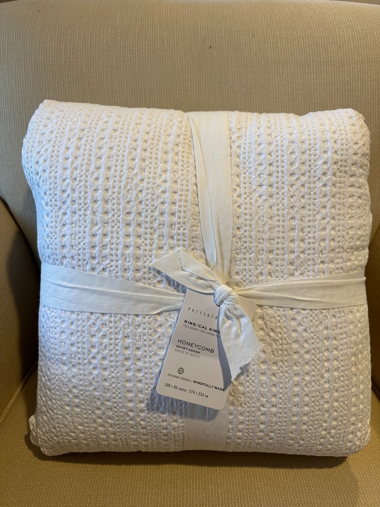 Pottery Barn Honeycomb Cotton Duvet Cover King / Cal. King White NEW w/tags retail sells for $279...
