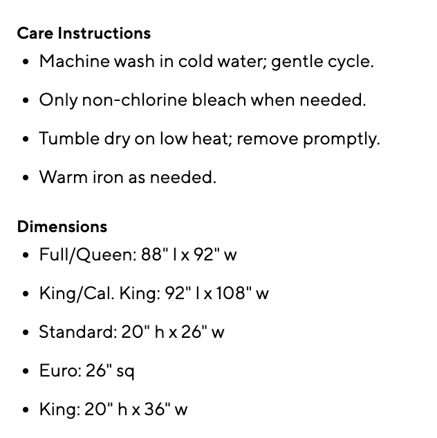 | Care Instructions | Machine wash in cold water; gentle cycle., Tumble dry on low heat; remove promptly. |