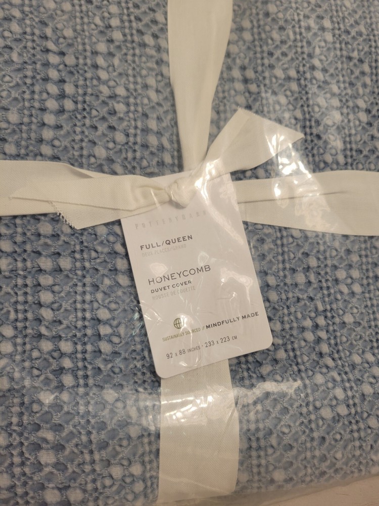 Elevate your bedroom decor with this stylish Pottery Barn Honeycomb Cotton Duvet Cover in Chambray Blue. The queen-sized cover features a chic honeycomb pattern and is made from high-quality cotton for a comfortable and luxurious feel. Its light chambray blue color adds a touch of elegance to any room, making it perfect for adults, teens, and kids alike. The duvet cover is easy to care for and can be machine washed and tumble dried. Its buttons closure type adds a unique touch to its design. This model is perfect for adding a touch of sophistication to any bedroom and is a must-have for anyone looking to upgrade their bedding collection.