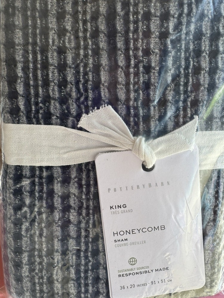 New Pottery barn Pillow sham Honeycomb King Chambray Free shipping in the USA