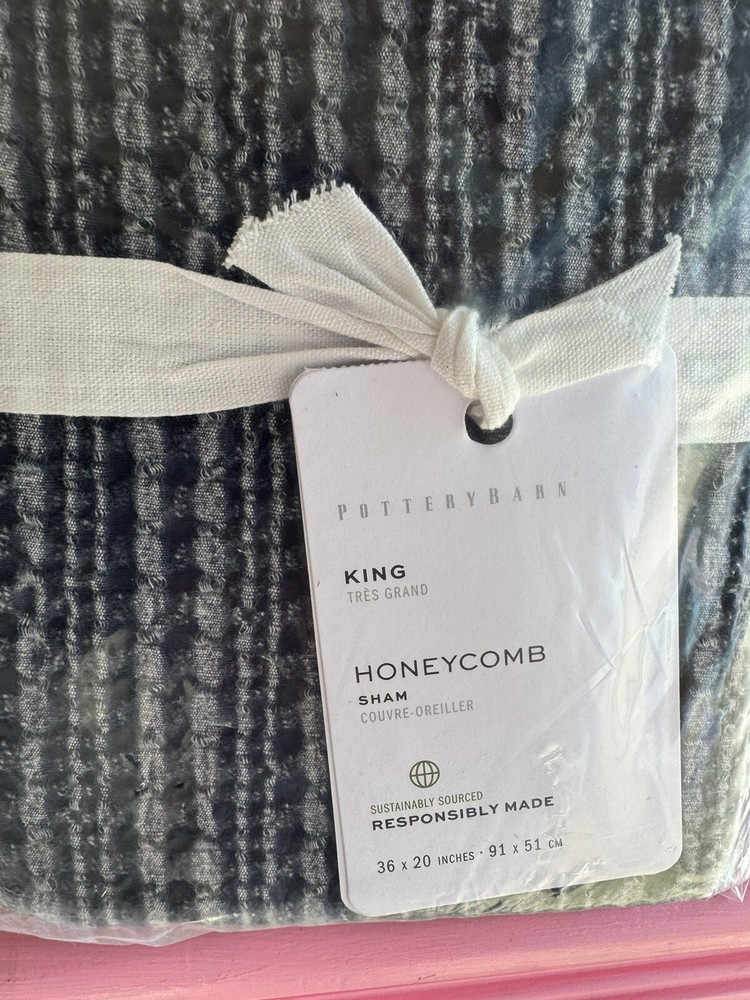 New Pottery barn Pillow sham Honeycomb King Chambray Free shipping in the USA...