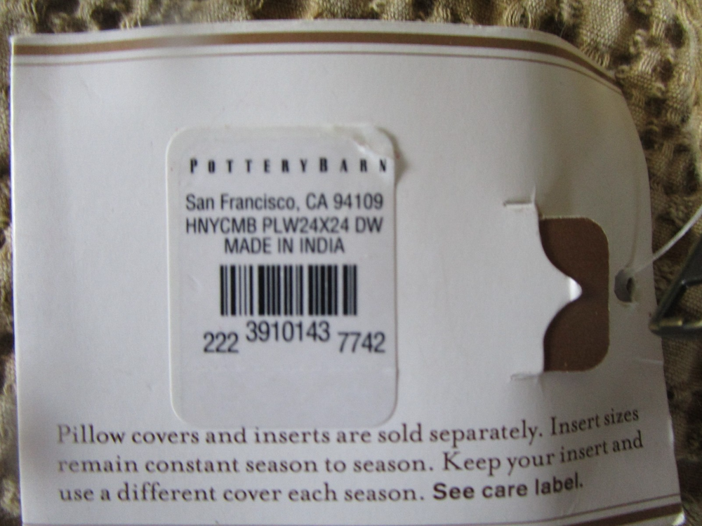 Up For Auction is - Pottery Barn Honeycomb driftwood pillow cover 24 New w tag New auction for pillow cover only. Smoke and pet free home....