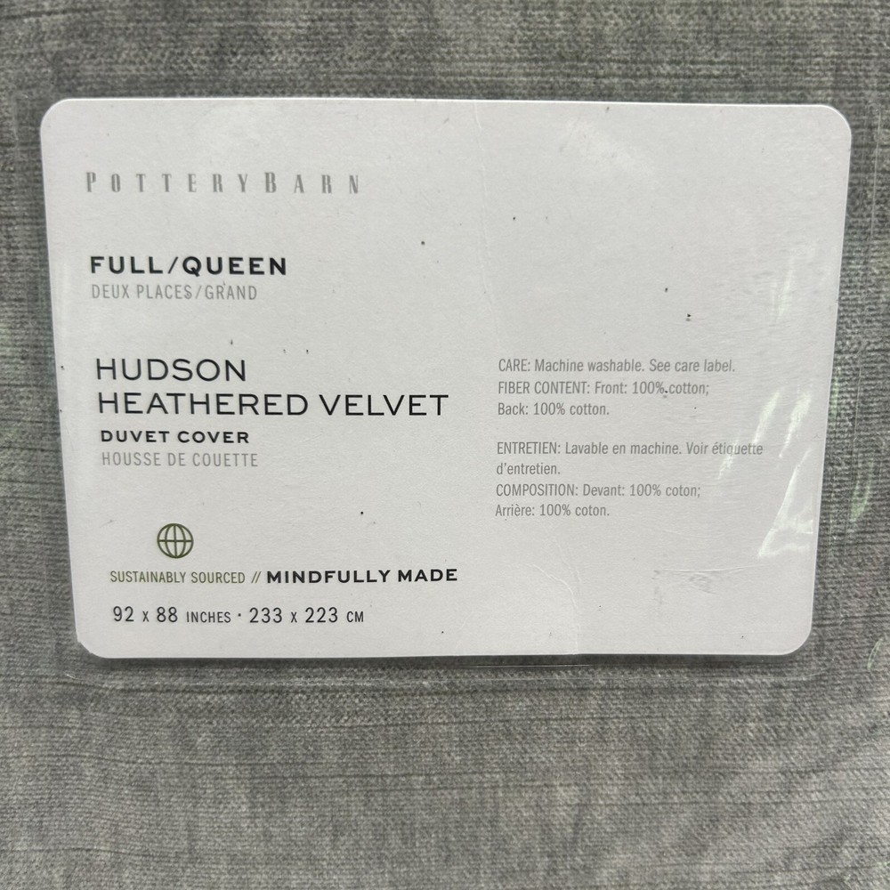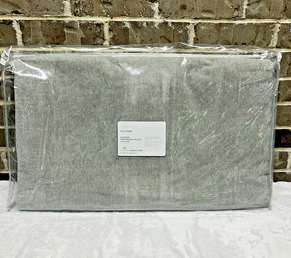 BRAND NEW AND IN THE PACKAGE Retails for $229.00, so getting an amazing deal here Add a touch of luxury to your bedroom with this Pottery Barn Hudson Heathered Gray Velvet Full Queen Duvet Cover Made of 100% cotton! The rectangular shape and solid pattern make it a perfect fit for any modern style bedroom. The gray color adds a subtle touch of elegance to your decor. This duvet cover comes with buttons for easy closure and is perfect for a full or queen size bed. I have MANY more nice bedding items in my Ebay store