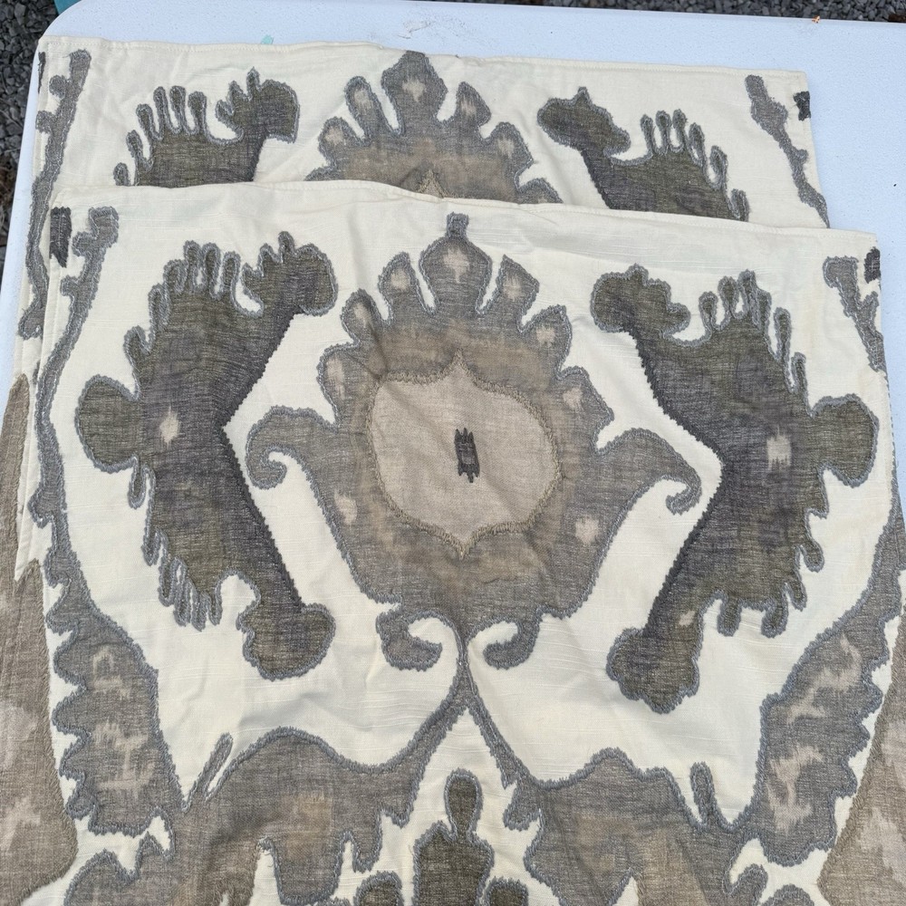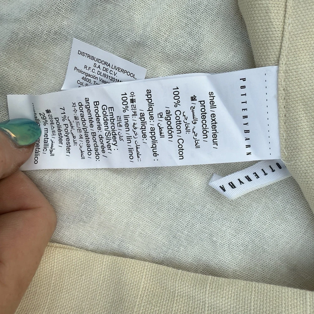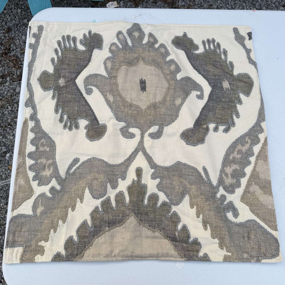 The Pottery Barn Hudson Ikat Embroidered Pillow Cover is a stylish and versatile addition to any room in your home. This square pillow cover features a neutral Ikat pattern with embroidered detailing, adding a touch of sophistication to your decor. Measuring 24x24 inches, this pillow cover is perfect for both women and men looking to elevate their living space with a unique and eye-catching accent piece. The button closure makes it easy to update your existing pillows with this fashionable and on-trend design.